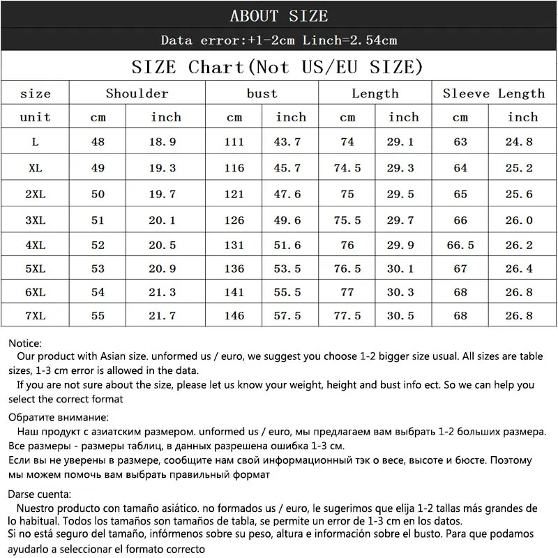 SizeL,XL,XXL,XXXL,XXXXL,5XL,6XL,7XL