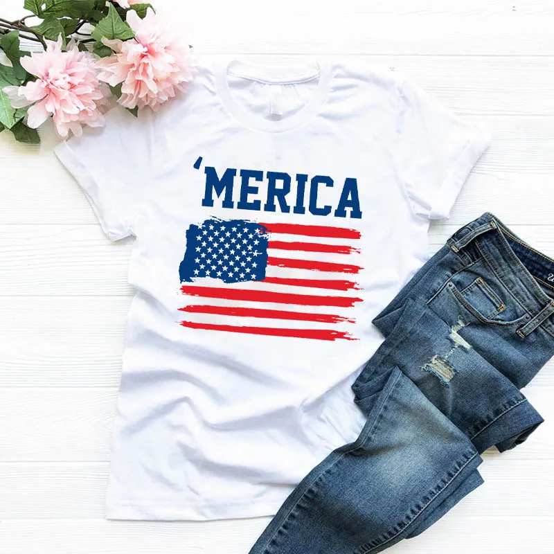 Летняя женская футболка с рисунком флага, американская одежда, футболка с графическим рисунком, футболка с коротким рукавом, Женский Топ, женская одежда