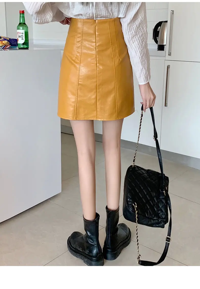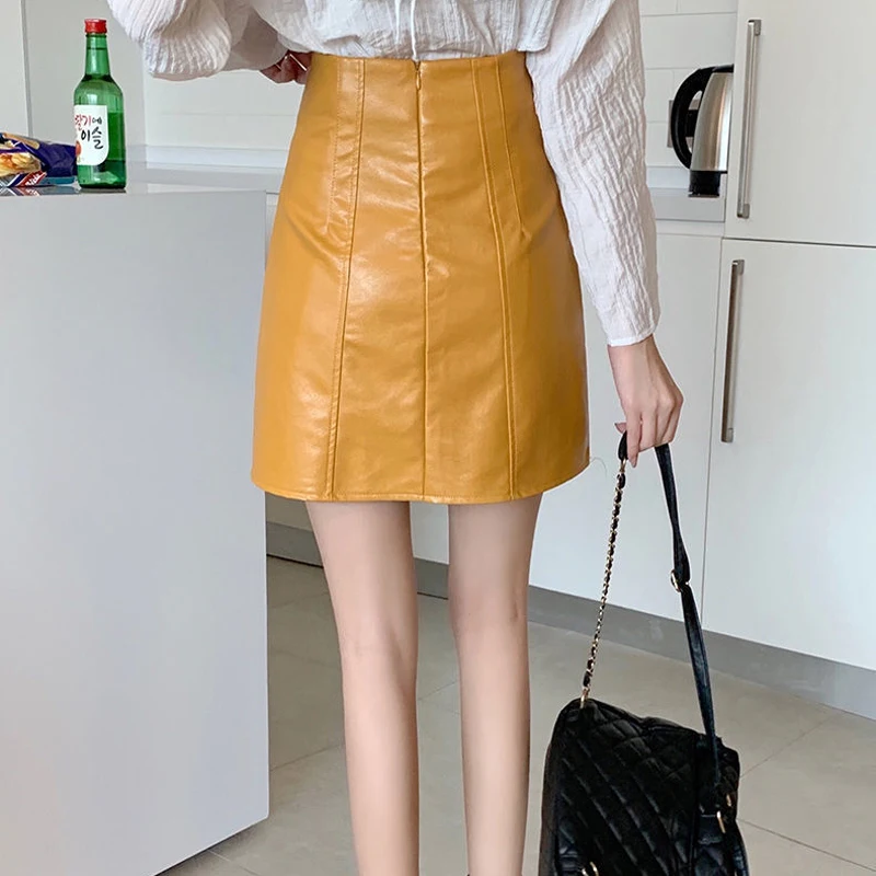 Осенняя юбка Heydress из искусственной кожи с высокой талией, розовая, желтая, черная, зеленая, синяя, 2021