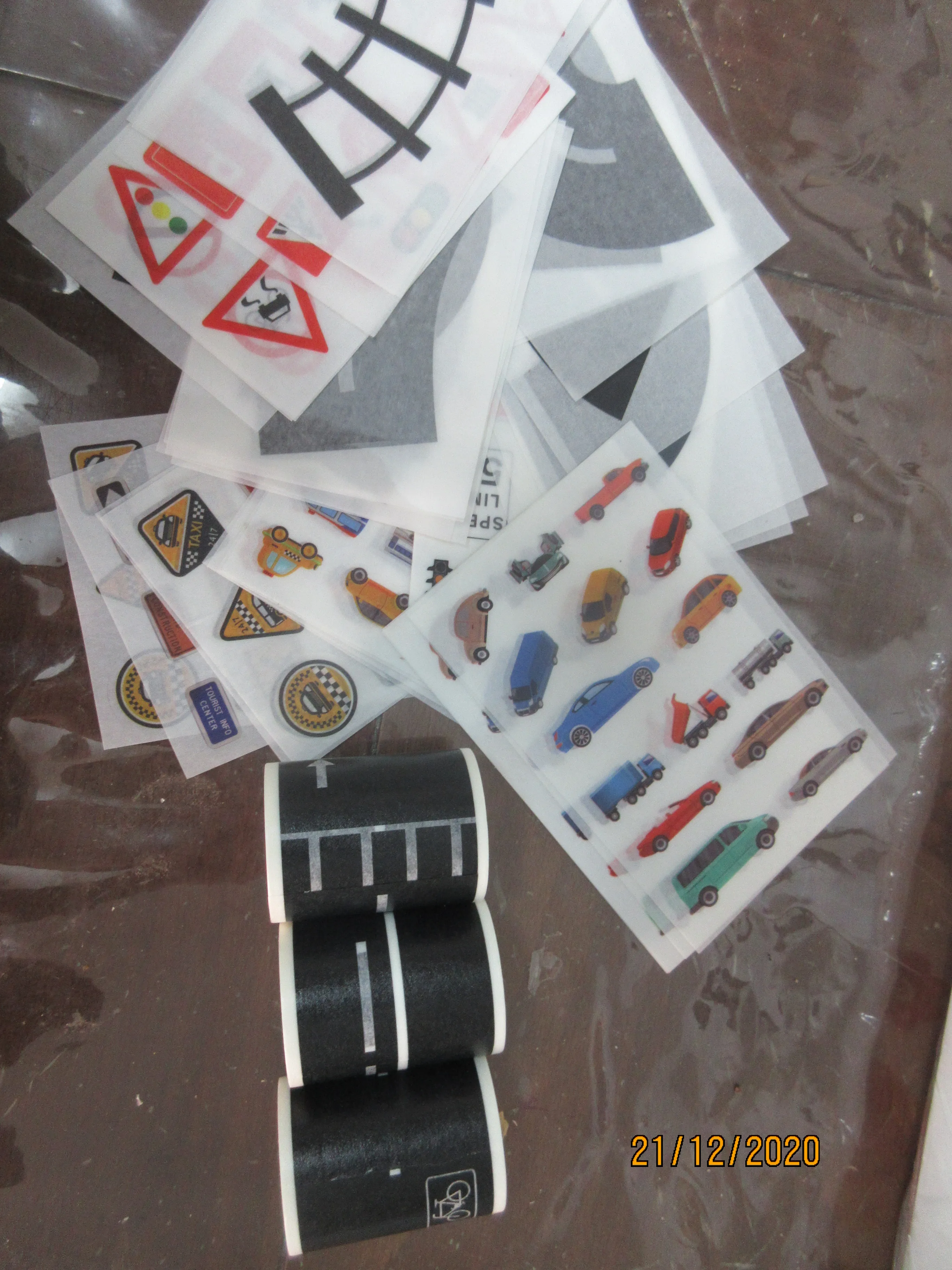 хорошего качества уголки. подходят к рулонным дорогам из этой же серии. похоже на малярный скотч, легко приклеивать, легко снимать. доставка 2 недели, но заказ просила прислать вместе с другим. аккуратные листы, 4 шт один комплект. трек отслеживался. можно брать.
