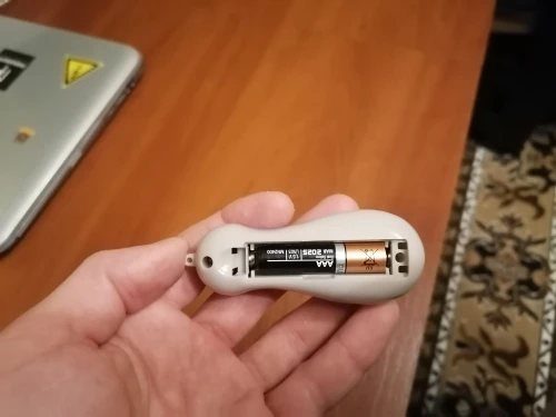 Работает от пальчиковой батарейки. Маленький.