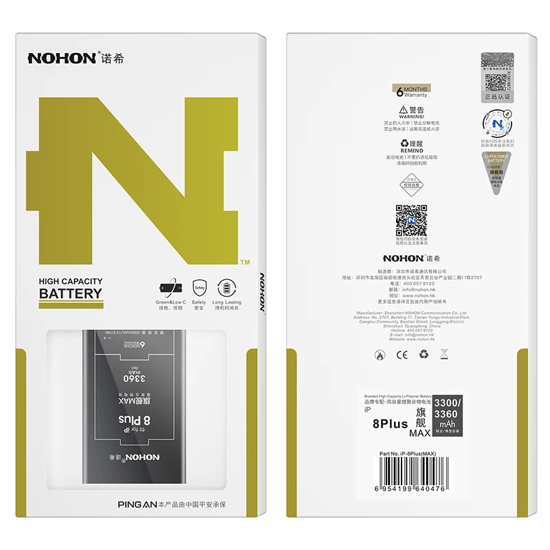 Батареи параметрБренд: NohonСовместимость: для Apple iPhone8 PlusЕмкость: 3300 мАч-3360 мАч
