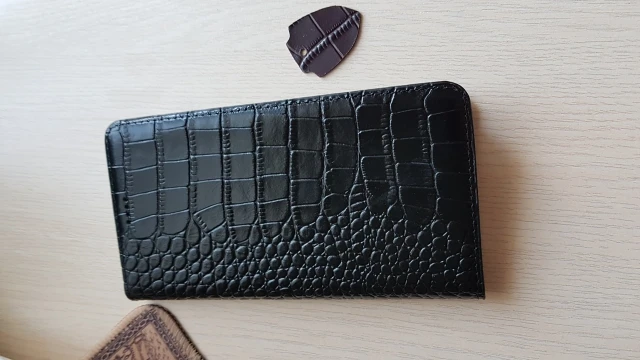 Чехол для телефона-книжка из натуральной кожи с имитацией кожи крок...