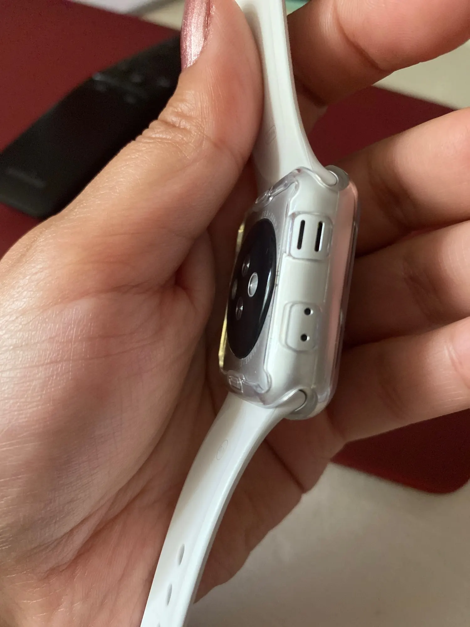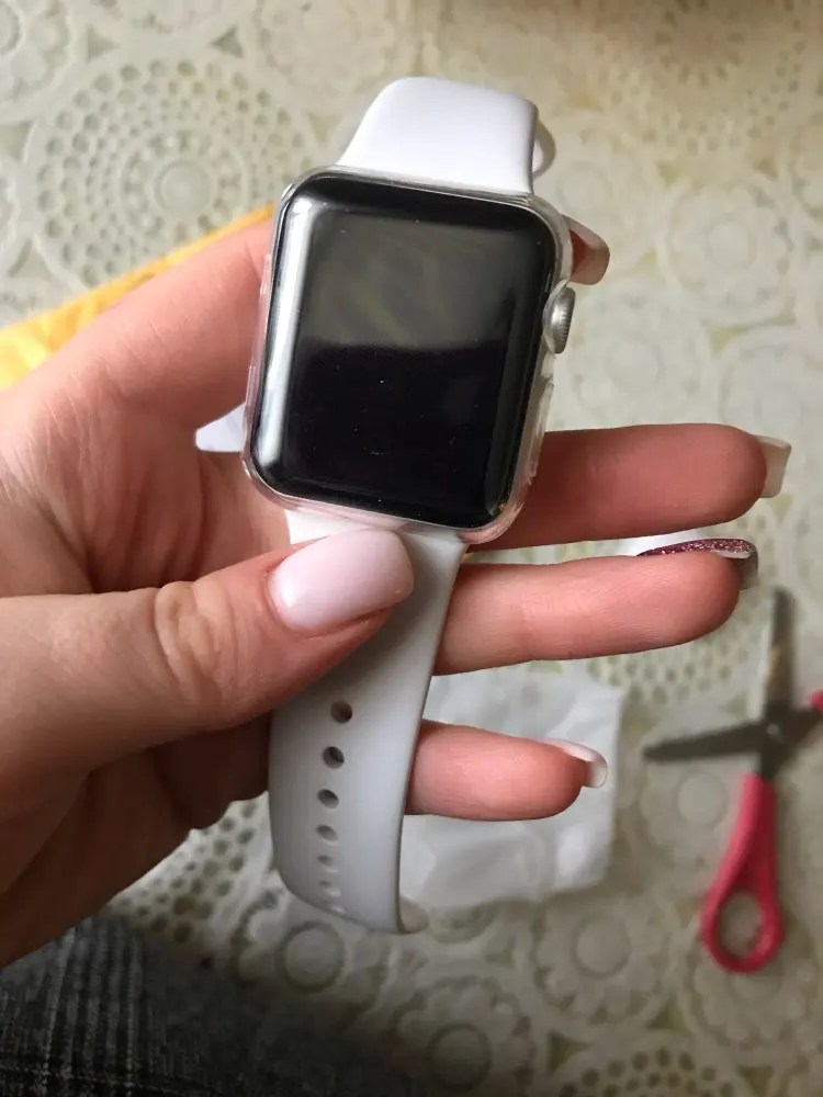 Пришла посылка очень быстро, надевать чехол очень тяжело, надела вторую часть с помощью пинцета))) Сидит отлично, работает также, как и без чехла) Советую продавца и этот товар! Ремешки надеваются также легко, кнопки сзади тоже закрыты, очень удобно, позже отпишу как будет в носке. Вот что работает круто как и без чехла, так и с ним - очень круто! Спасибо продавцу!!!!