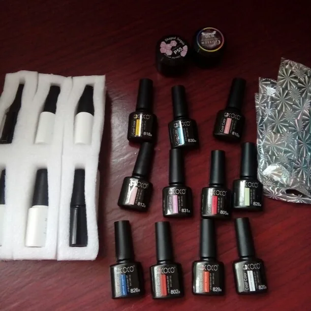 Цвета соответствуют изображению и выглядят еще красивее в реальности. Доставка была длинной, но я впечатлен качеством продукта-цветные гели, покрытые только одним слоем и идеально блестящие, и нет необходимости наносить верхнее пальто в конце, потому что у них нет липкий слой. Я очень доволен, и это не было уверено, что моя последняя покупка. Продавец рекомендует.