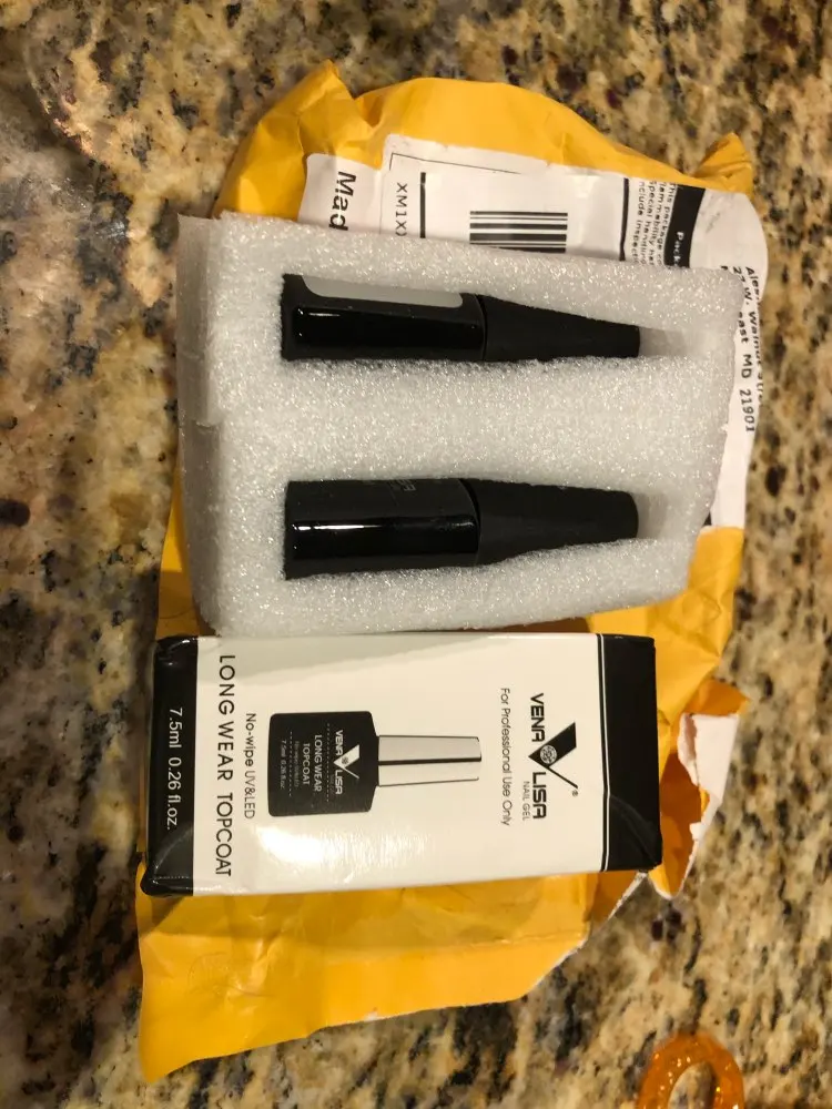 заказываю гель не первый раз, ооочень понравился, но в добавок и гелю решила заказать топ и базу. Пришло мне все это до Эстонии/Таллинн за 15 дней. Топ средний жидкости, база более вязкая. В деле еще не пробывала. Но думаю что хорошие. за такие копейки очень хороший продукт.