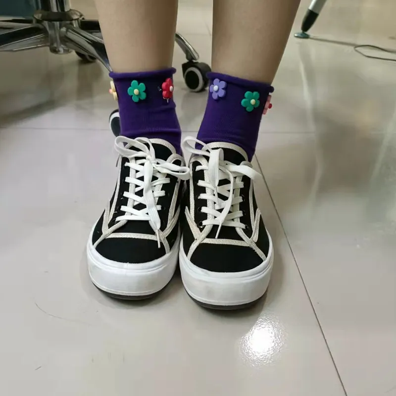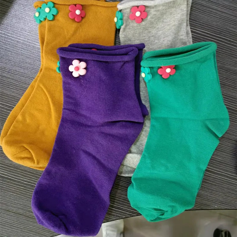 Новые носки с объемным цветком, женские носки, однотонные, черные, белые, хлопковые милые носки с бабочками, носки-башмачки с закрытым носком, женские повседневные носки, подарок
