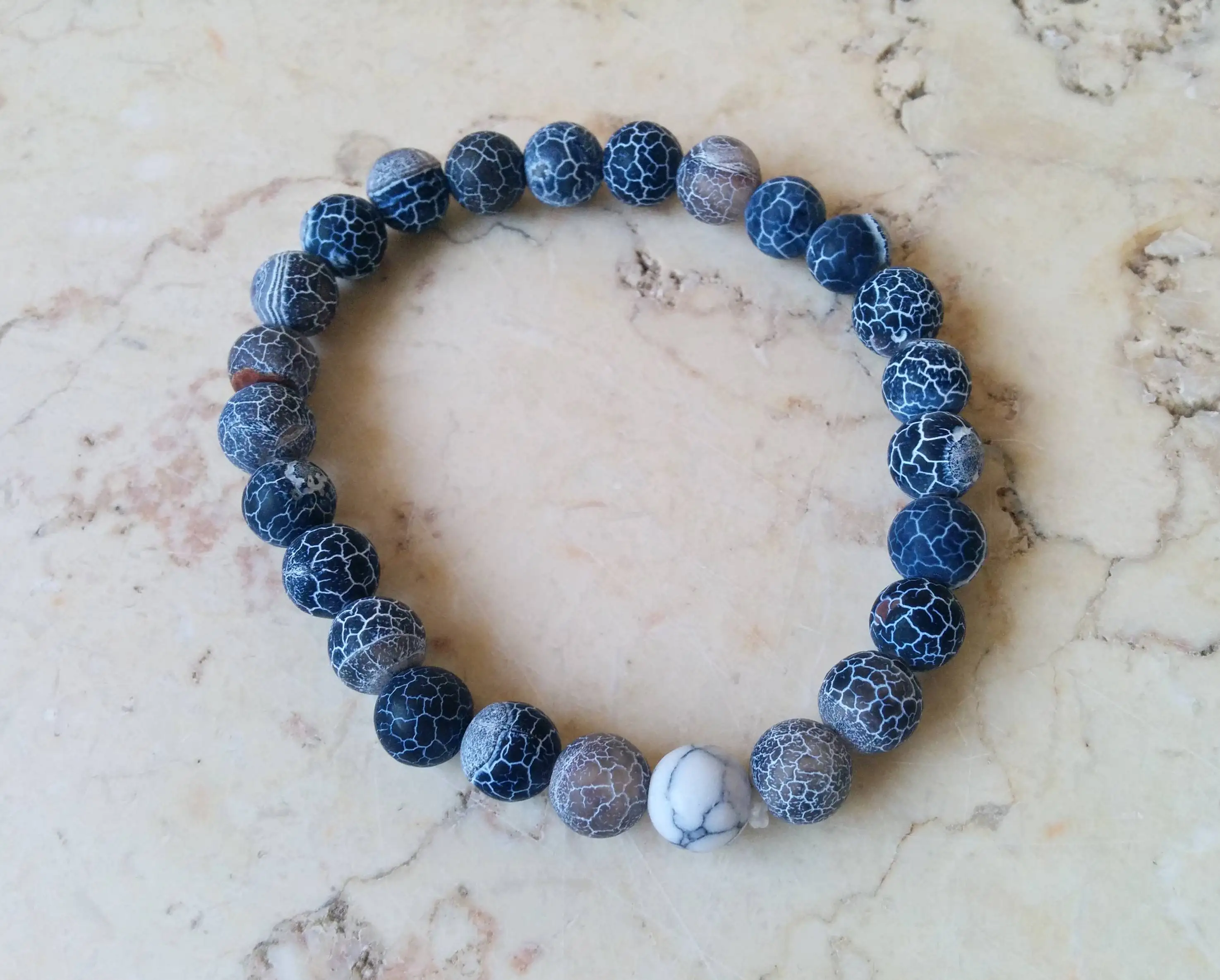 Браслет из камень из натуральной лавы бусин, Мраморная бусина, тигровый глаз, ширина 8 мм