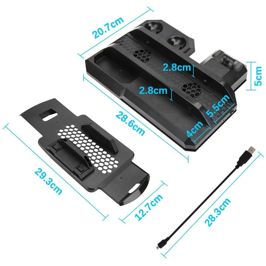 2. Ток: максимальный зарядный ток составляет до 800 мА в чехол для зарядки одного оригинального контроллера PS4; максимальный зарядный ток составляет 420ма для двух оригинальных контроллеров PS Move, заряжаемых одновременно (вентиляторы выключены);