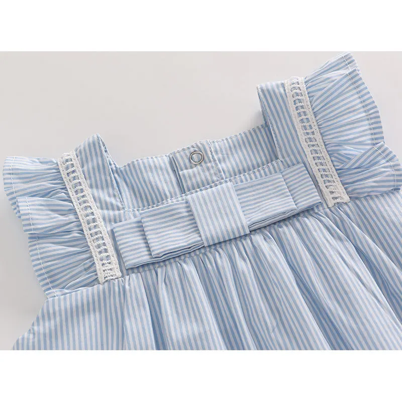 Платье Vlinder для маленьких девочек, летняя одежда для малышей, милое платье принцессы с бантом, синие платья с короткими рукавами для новорожденных, комплект из 3 предметов