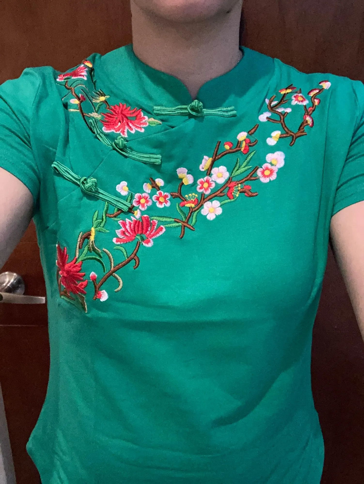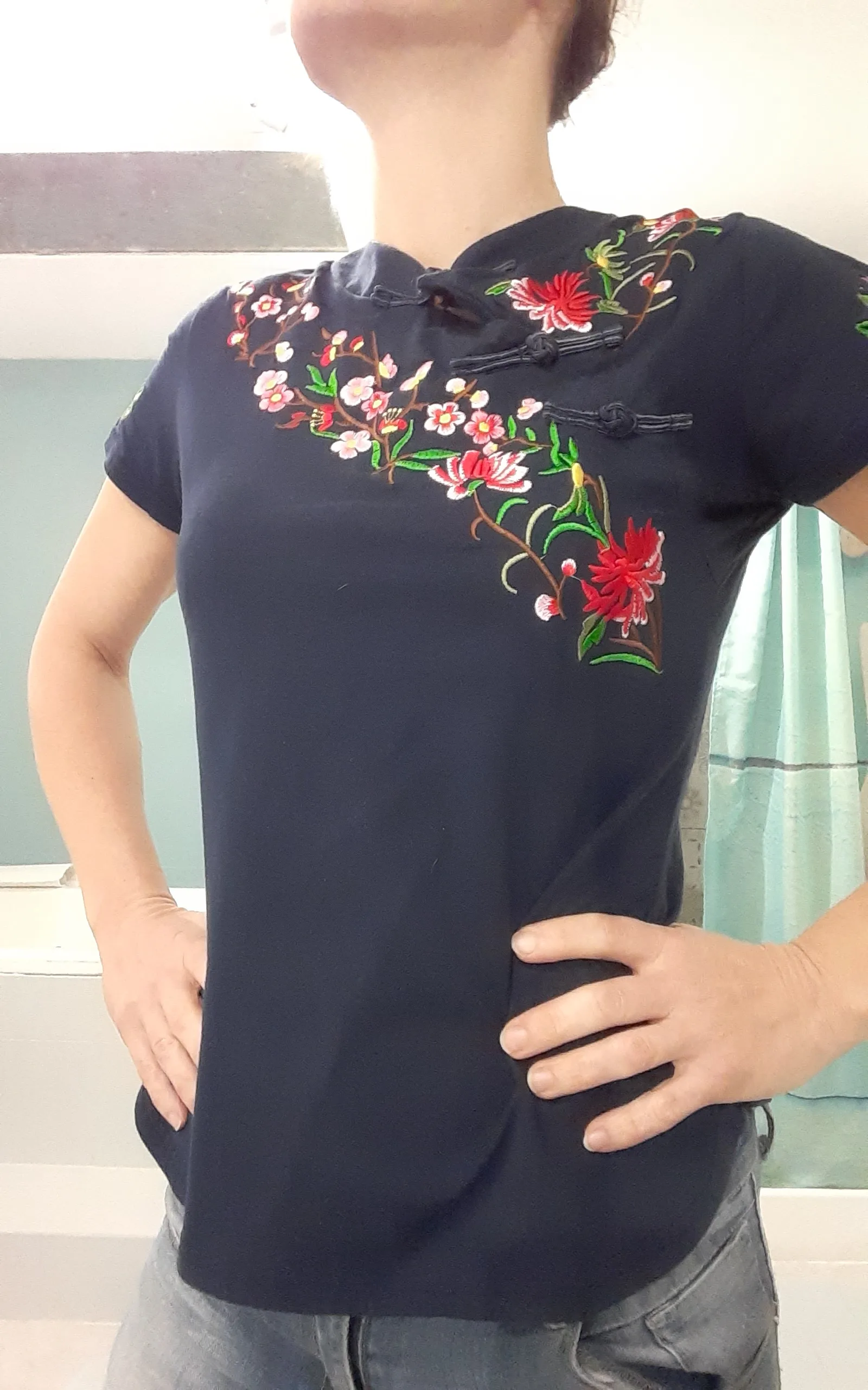 Очень красивая вышивка на этой футболке, которая мне нравится Азиатский стиль; Размер Довольно маленький; Укажите размер выше;