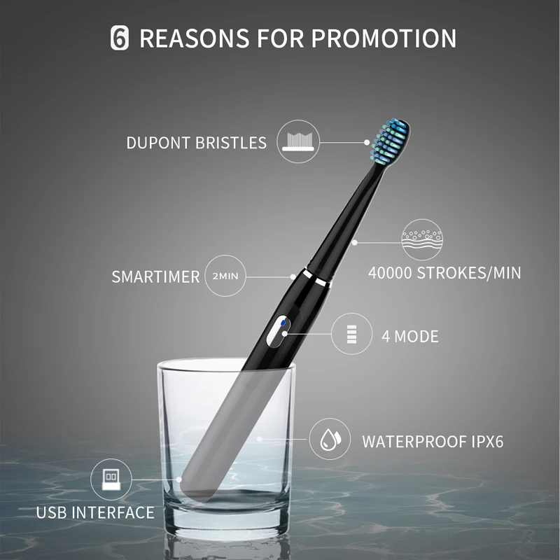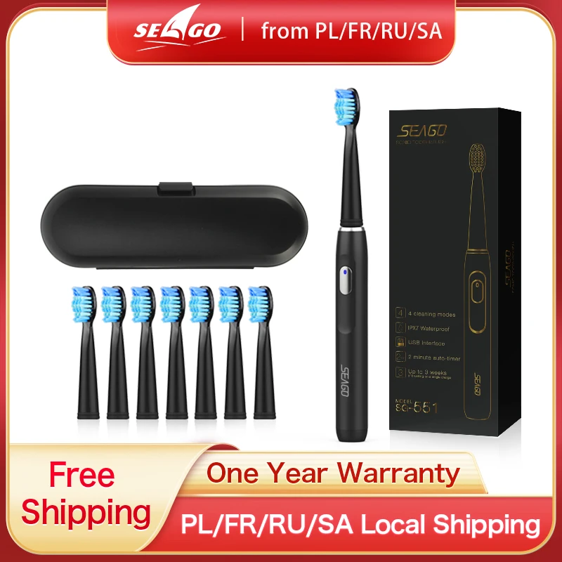 Seago Sonic перезаряжаемая электрическая зубная щетка с 3 сменными головками 2 минуты таймер и 4 режима чистки водонепроницаемый SG551