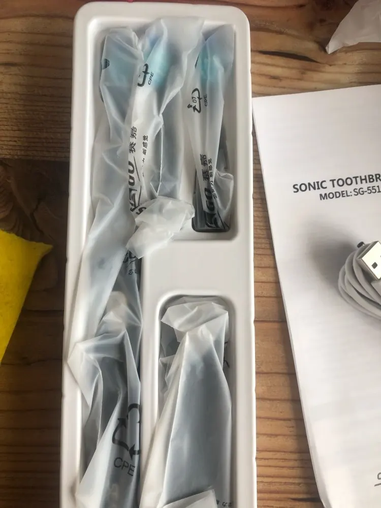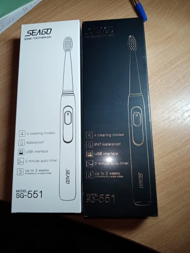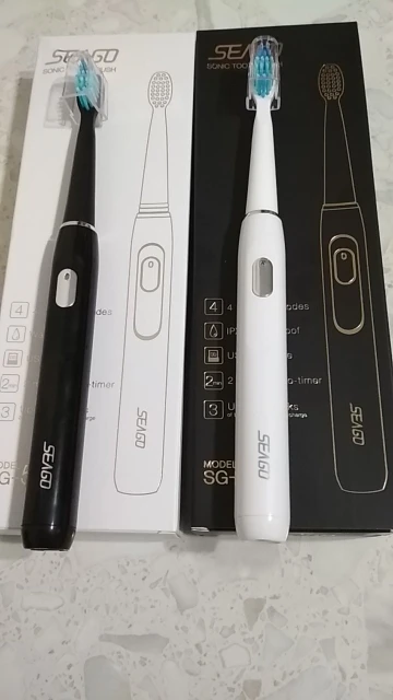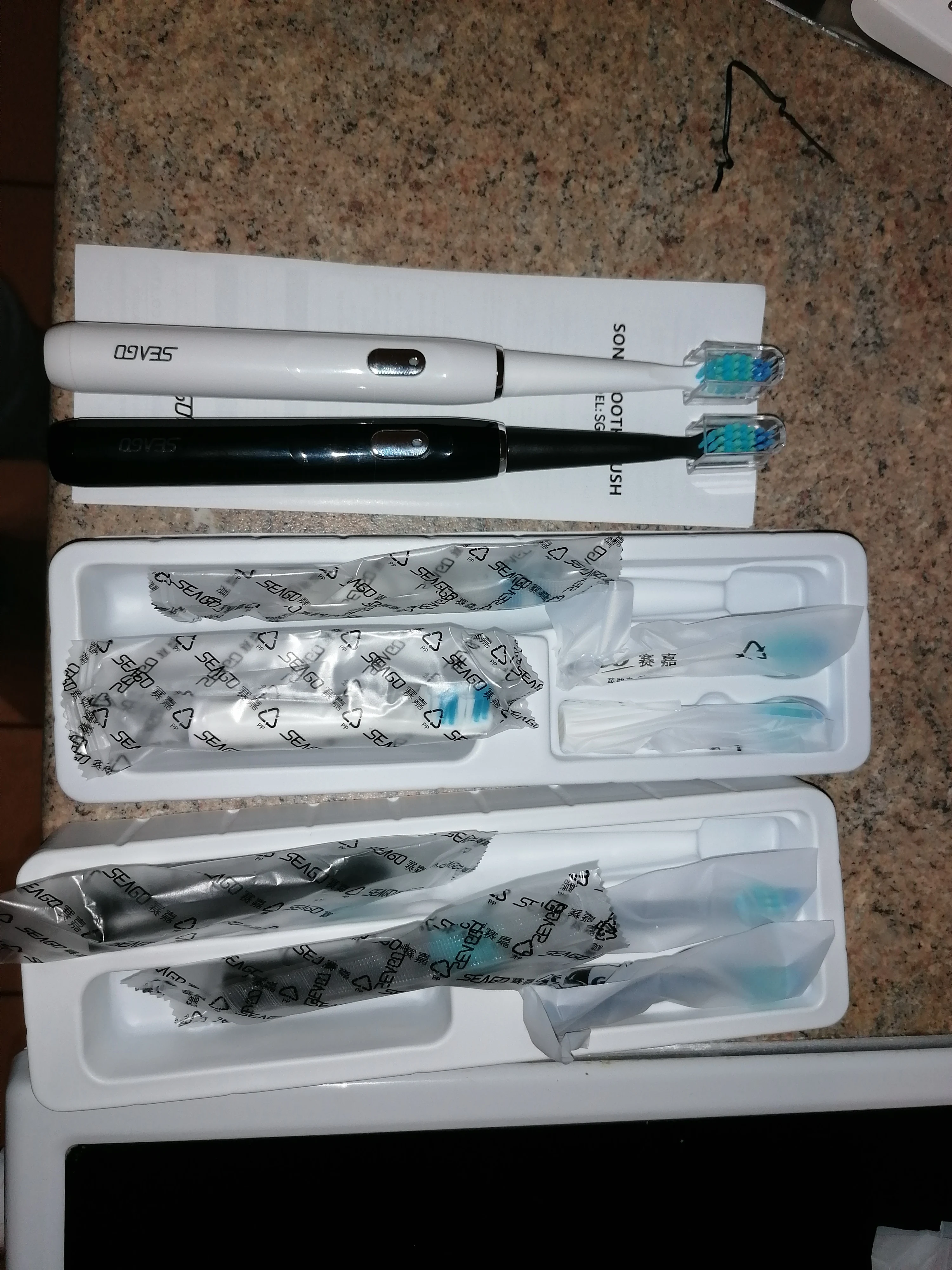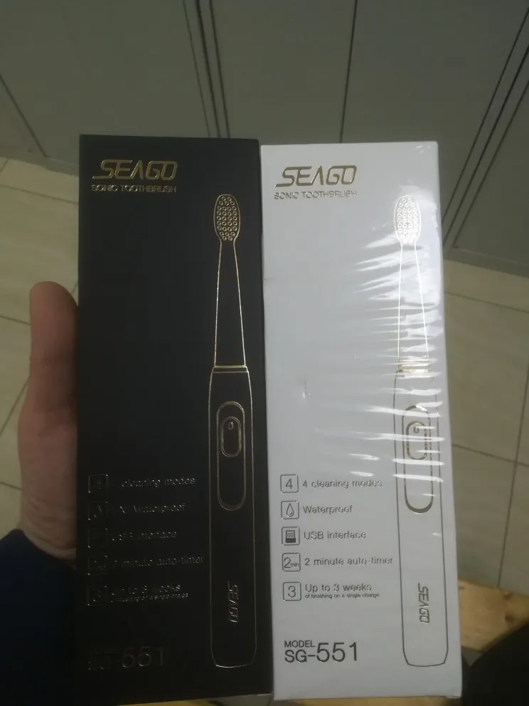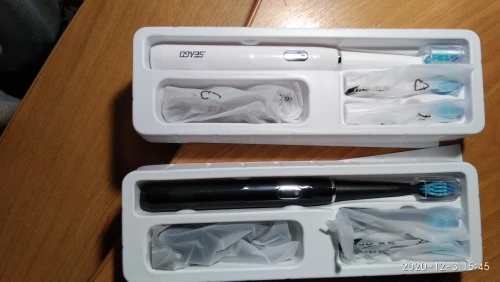 Получил очень быстро. 2 щетки. Белая и черная. По сравнению с традиционной щеткой очень непривычно. Но она работает, и тот факт, что она работает ровно 2 минуты, очень помогает.