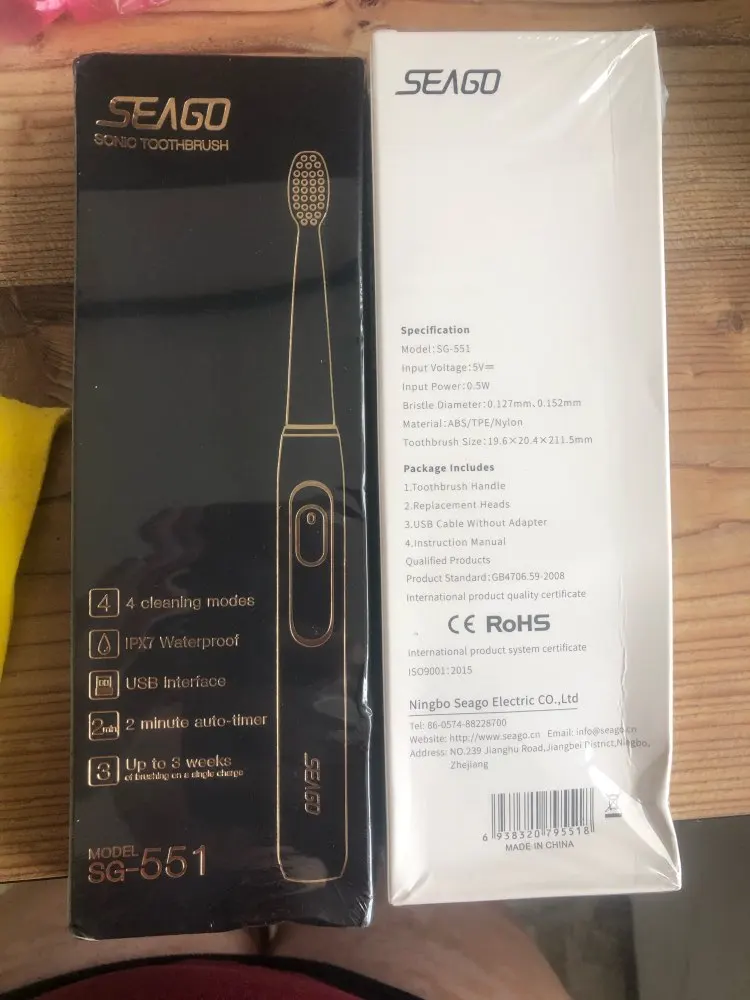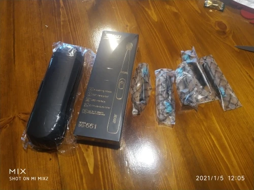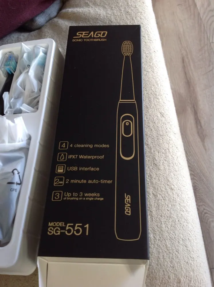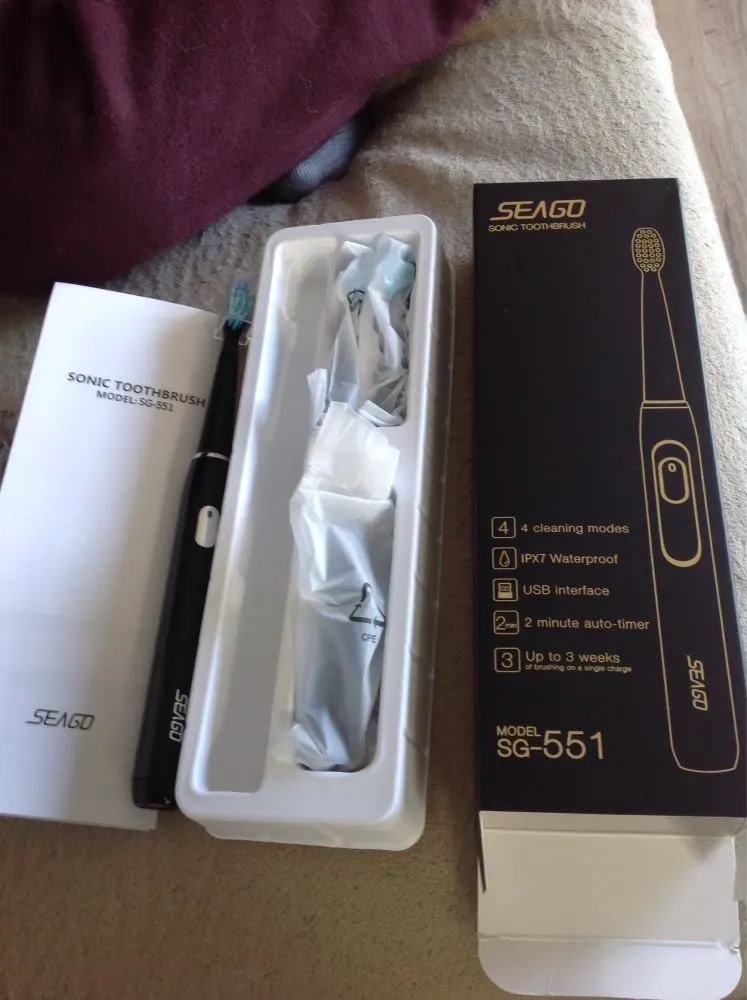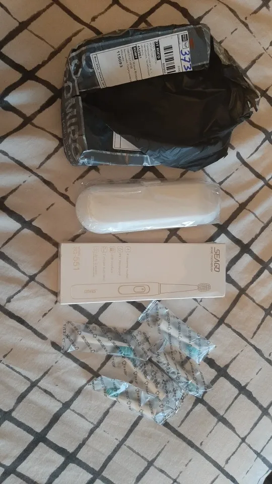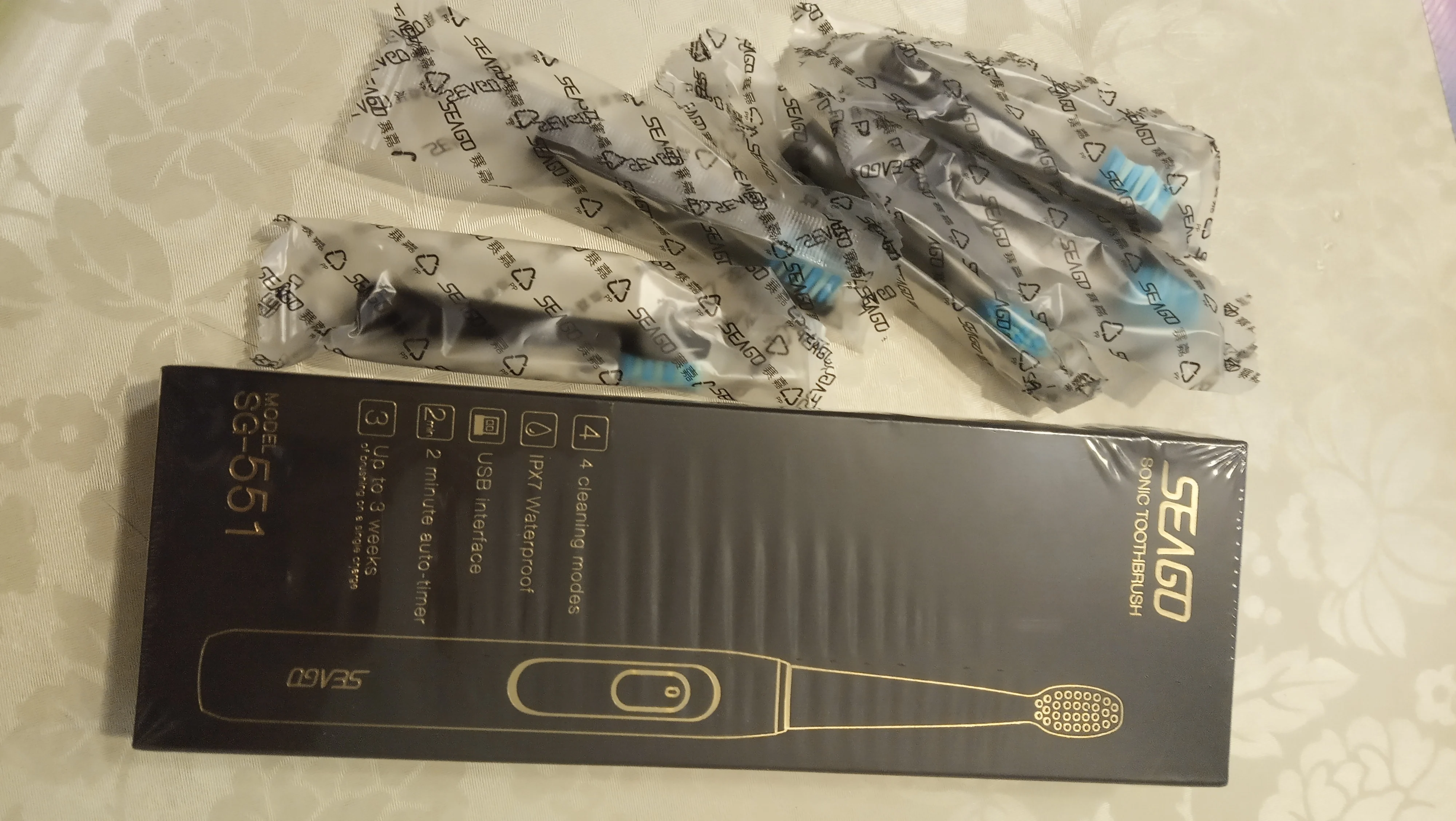 Продавец отправил заказ в день оплаты, но доставка заняла более 2 месяцев. Заказ соответствует описанию: сама щётка, 8 насадок, кабель для зарядки, инструкция на английском языке. Это вторая щётка SEAGO которую я покупаю. Первая служит уже 2 года и 2 месяца, надеюсь и эта будет служить долго моей жене. Продавца рекомендую.