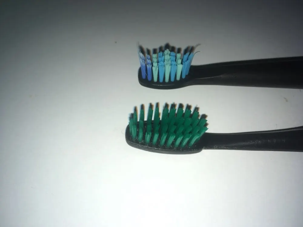 После двух недель использования повылазили щетинки. Хотя изначально они все торчали на разных уровнях. В сравнении на фото щетка которой я пользовался полгода. Площадь её щетинок в два раза больше. Со старой щеткой через пять минут зубы чистые, с новой же щеткой и после 6 минут зубы почищены недостаточно хорошо. И ещё пластик на новой щетке очень твёрдый, когда касаешься зубов при работающей вибрации очень противные ощущения. На старой щетке остаются царапины от зубов, то есть она не травмирует эмаль так как новая щетка.