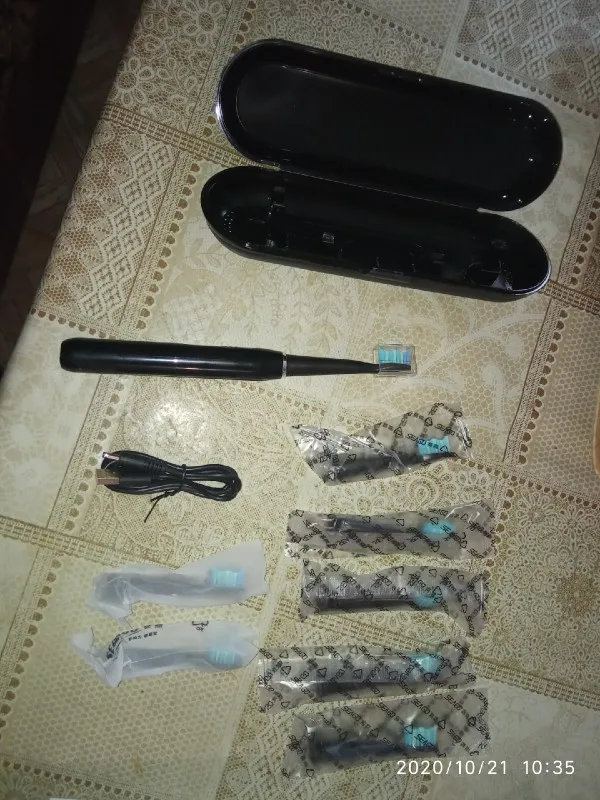 посылка пришла очень быстро из Москвы. заказываю второй раз. чистит отлично, есть таймер в 2 минуты. много режимов + продавец закинул доп насадки, за что отдельное спасибо. аккумулятора хватает на долго.