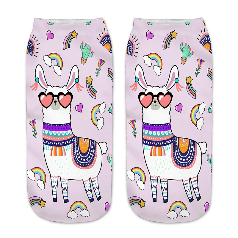 Носки женские, для мальчиков и девочек, с 3D-принтом, с рисунком мультяшной альпака