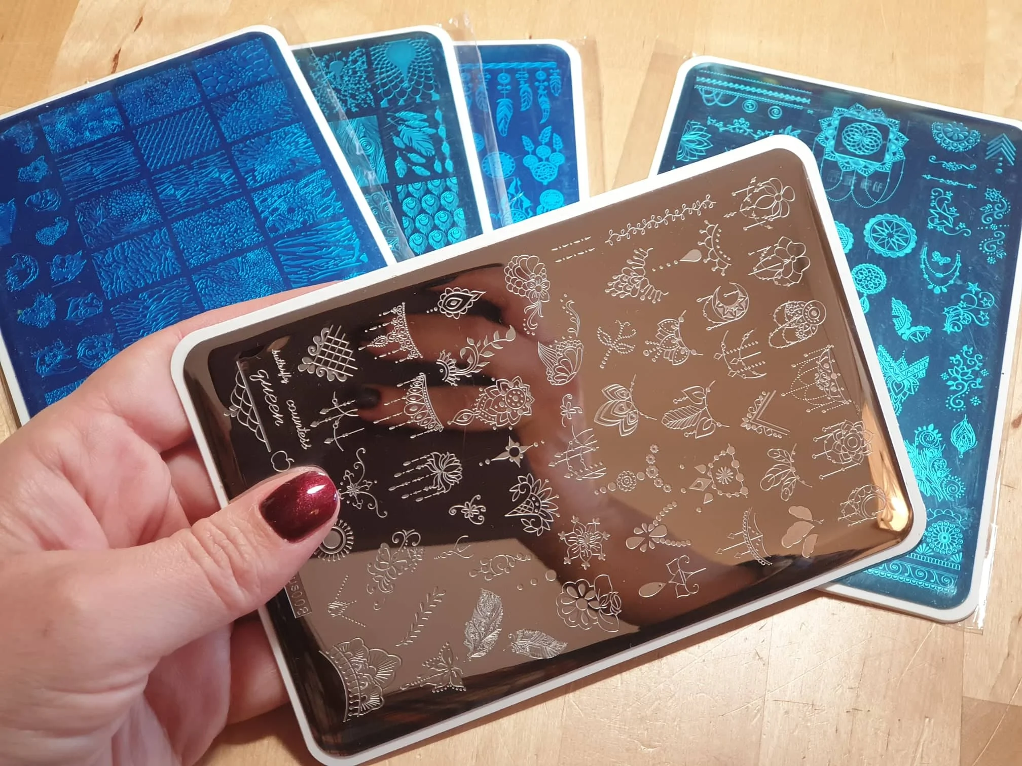 Доставка в Астрахань три недели.Трек отслеживался полностью.Пришли в пакете с пупыркой, но ничего не повредилось.Пластинки просто СУПЕР!9 Гравировка отличная.Пробовала разными лаками и штампами, все отпечаталось.Очень довольна.