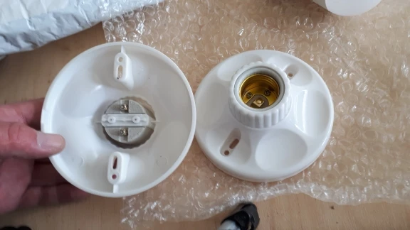 Быстрая доставка, около месяца. Сам товар как на картинке. Корпус из пластмассы, патрон керамика, внутренности из анодированного алюминия. Заявленный ток в 6 А вряд ли выдержит, но для светодиодных ламп подойдёт. Жаль нет заглушек под крепеж.