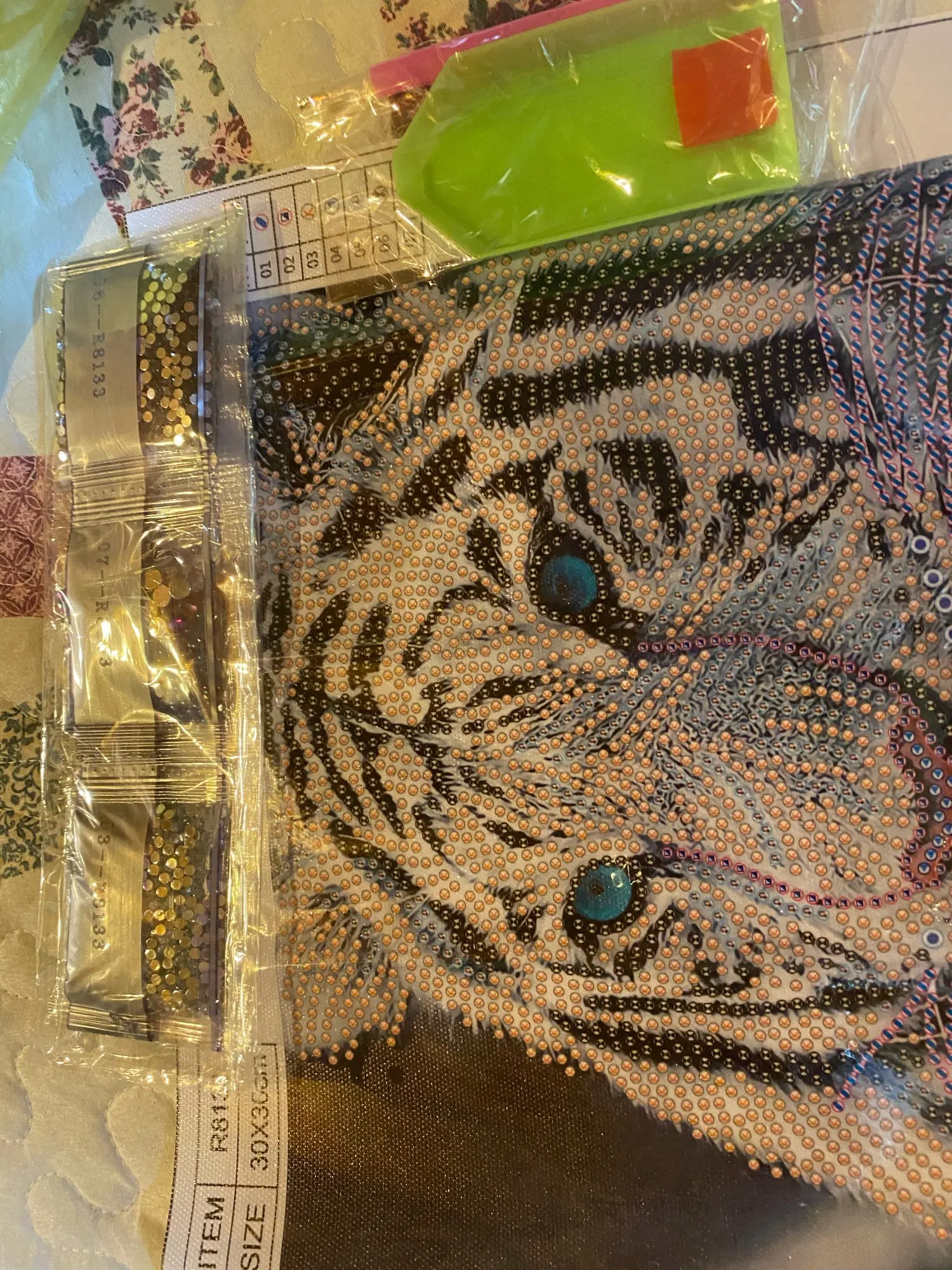 Холст пришел в нормальном состоянии, но придется разглаживать, стразы на месте