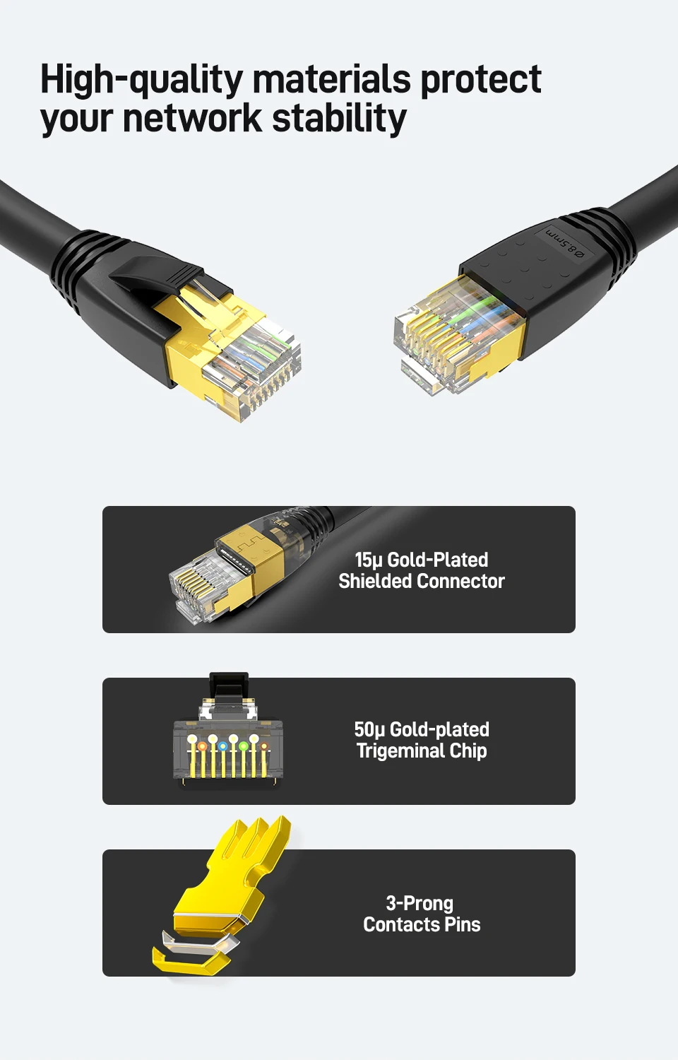 Лучшее качество, которое мы можем иметь для очень толстых кабелей категории 8 RJ45