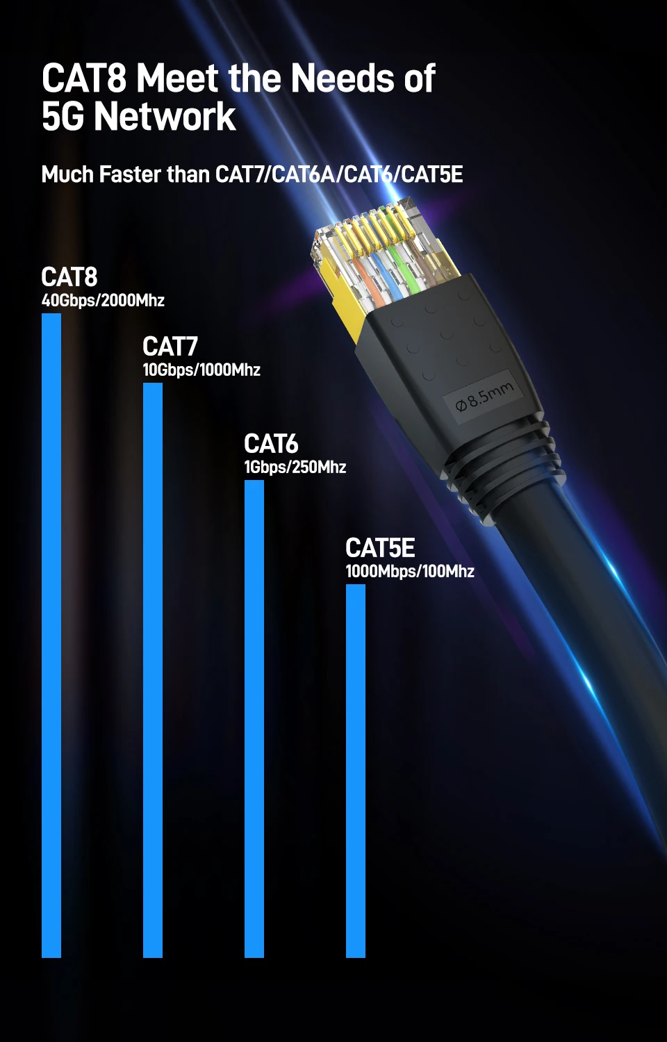 Если у вас есть Интернет-волоконная оптика, вы должны иметь кабели cat 8.