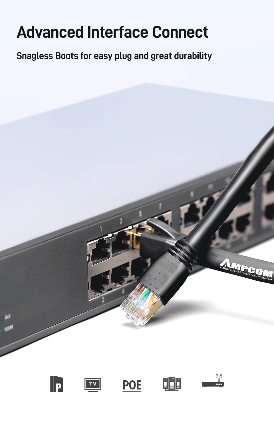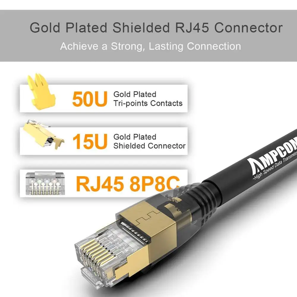 Ethernet-кабель AMPCOM SFTP CAT8, высокоскоростной 24AWG соединительный кабель 40 Гбитс 2000 МГц с позолоченным разъемом RJ45 для внутреннегонаружного использования
