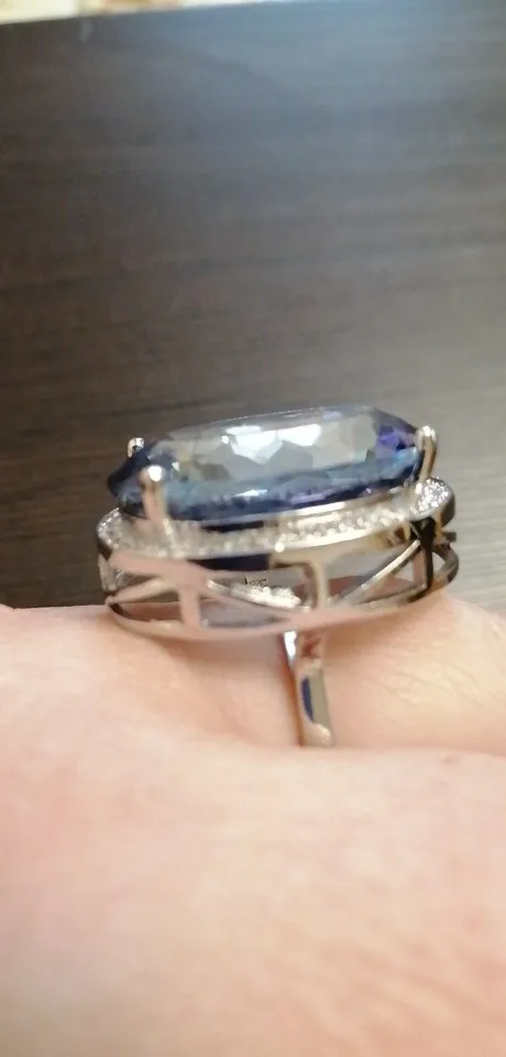 Este anillo es simplemente una maravilla, es tal cual viene en la foto, idéntico que en las imágenes, queda muy bonito en la mano, es muy brillante y la calidad de la zirconia cúbica es muy buena tiene muchos reflejos, está muy bien tallada, no tiene defectos. Ha tardado 21 días en llegar a mi casa, muy bien embalada, me hubiera gustado que estuviera en una cajita pero no, viene en una bolsita de plástico pero muy protegida para no dañar el anillo. Recomiendo al vendedor.