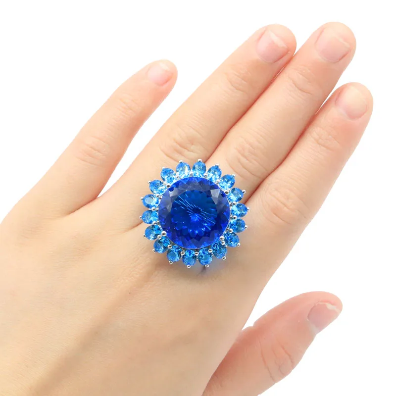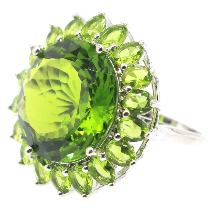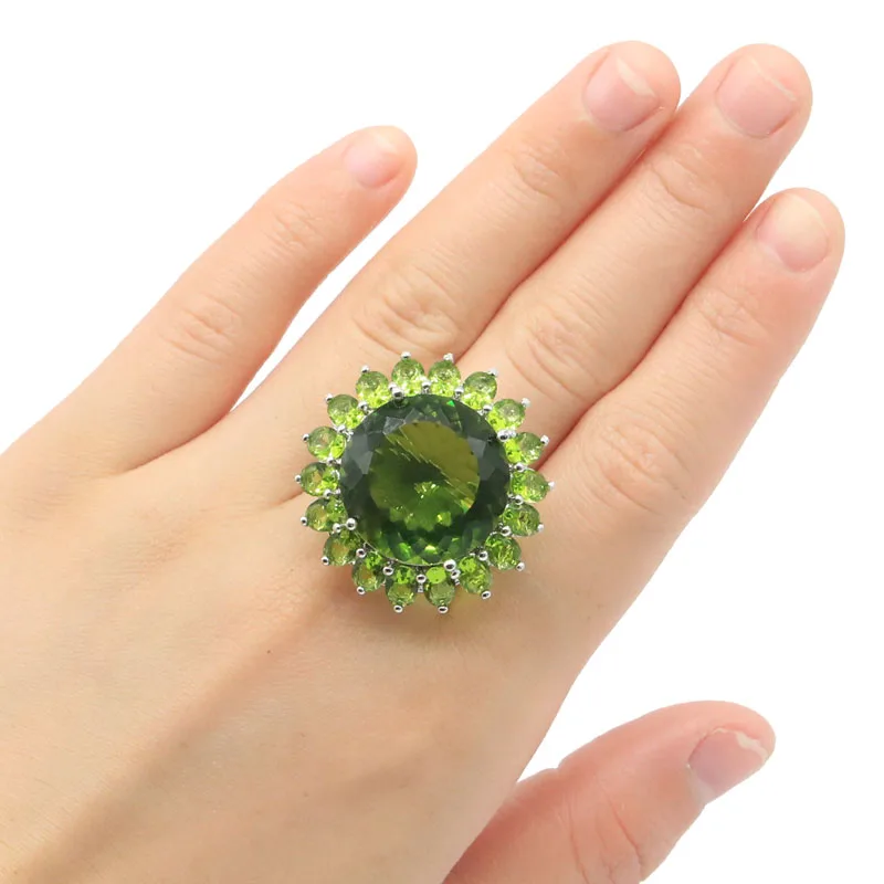 31x31 мм Большой Круглый драгоценный камень 20 мм Зеленый Перидот Швейцарский синий топаз женское серебряное кольцо для свиданий для женщин