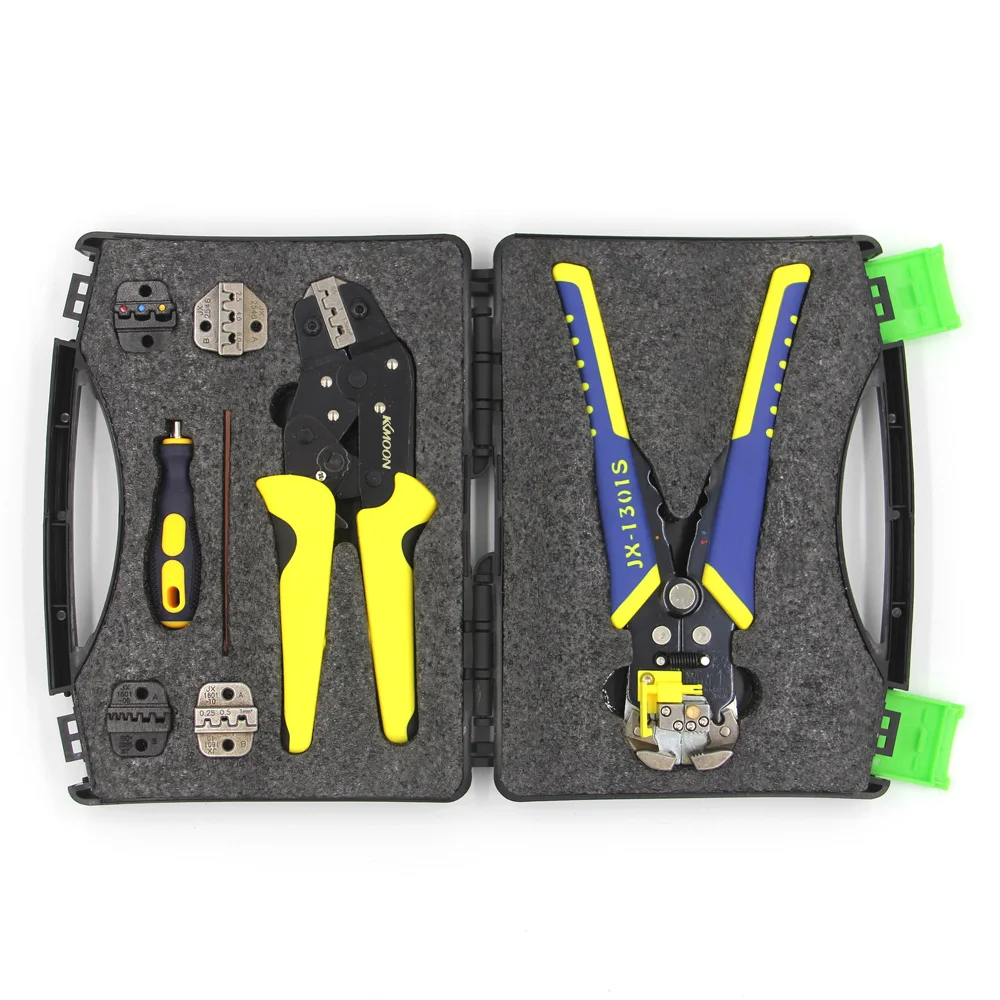 Эти профессиональные обжимные инструменты с саморегулируемыми обжимными плоскогубцами и зачистки проводов отличаются удобством, эффективностью и безвредностью сердечников кабеля. Он прост в использовании, просто удерживайте ручку и управляйте ею один раз, чтобы успешно нажать плотно прилегающие провода и клеммные блоки. Особенности:С 5 взаимозаменяемыми клеммами с различными диапазонами обжима.Профессиональный инструмент для обжима проволоки с саморегулируемым механизмом храповика для удобства эксплуатации.Подходит для большинства неизолированных обжимных терминалов и разъемов.Мульти-функциональный провод для зачистки с модернизированной конструкцией и многое другое одноразовая бритва с удобной ручкой для проводов от 24 до 10AWG (0,2-6.0mm ²).Благодаря большому захвату ручки, легкая и компактная конструкция и конструкция ручки обеспечивают идеальный эффект обжима.Разработан в соответствии с инженерными факторами человека, он может экономить 50% энергии при обжиме.Пластиковый ящик для инструментов имеет гидроизоляцию поверхности и больше подходит для переноски и длительного хранения. Характеристики:Материал: Высокоуглеродистая сталь + сплавПодходящие клеммы и Диапазон обжима проводов:JX 1601-01: цветные гнезда + изолированные клеммы 24-14 AWG (0,25-2.5mm ²)JX 1601-06: конец шнура терминалы 24-10 AWG (0,25-6.0mm ²)JX 1601-08: неизолированный открытый Цилиндрический разъем 26-16 AWG (0,14-1,5 мм ²)JX 1601-10: неизолированный открытый Цилиндрический разъем 28-18 AWG (0,1-1.0мм ²)JX 1601-2546: MC4 солнечной разъем клеммы 14-10 AWG (2,5-6.0mm ²)Зачистки диапазон автоматический инструмент для зачистки проводов: 24-10 AWG (0,2-6.0mm ²)Размер проволоки: прибл. 190*80*20 мм/7,48*3,15 * 0.79inВес щипцы для проволоки: прибл. 348,5 г/12,29 унцийАвтоматический Размер зачистки проводов: прибл. 210*108*28 мм/8,27*4,25*1,10 дюймовВес автозачистки проводов: прибл. 316 г/11,15 унцийРазмер посылка: прибл. 23,5*18,5*4,5 см/9,25*7,28 * 1.77inВес посылка: прибл. 1010 г/35,63 унций Примечание:Пожалуйста, обратите внимание на направление анастомоза штампов и терминалов при работе, в противном случае штампы будут вспыхивать. Посылка:1 * JX-1601 щипцы для проволоки1 * S2 отвертка4 * Запасные штампы4 * винты1 * ящик для инструментовИли1 * JX-1601 щипцы для проволоки1 * JX-1301S автозачистки проводов1 * S2 отвертка4 * Запасные штампы4 * винты1 * ящик для инструментов