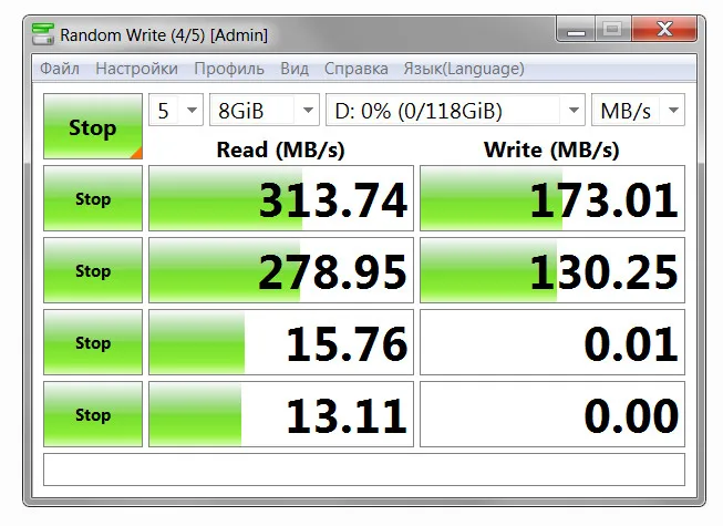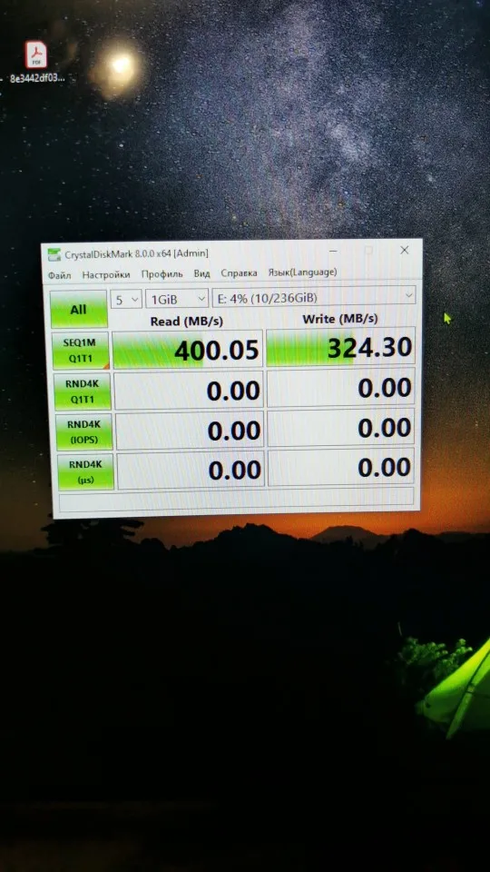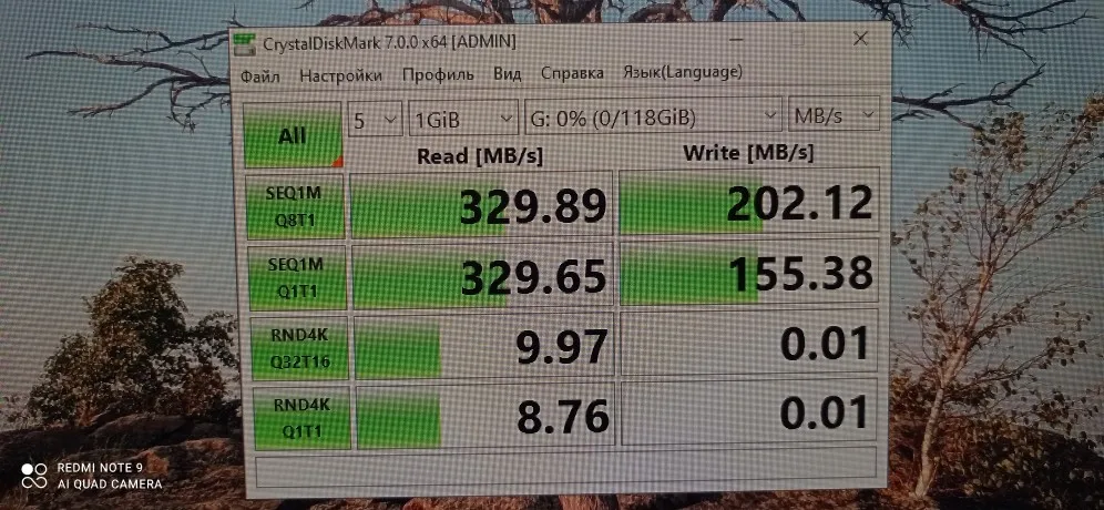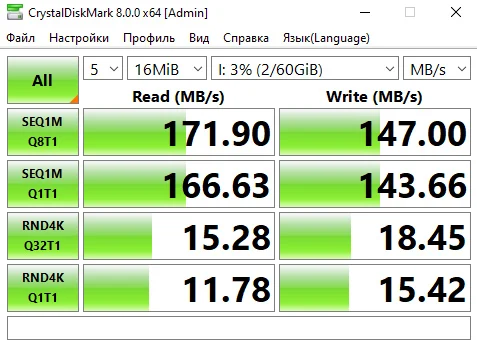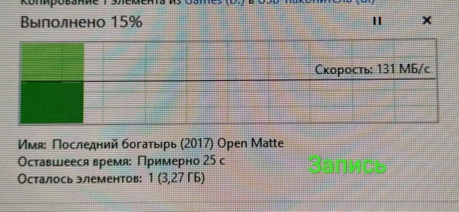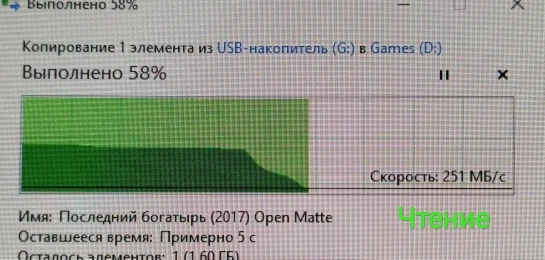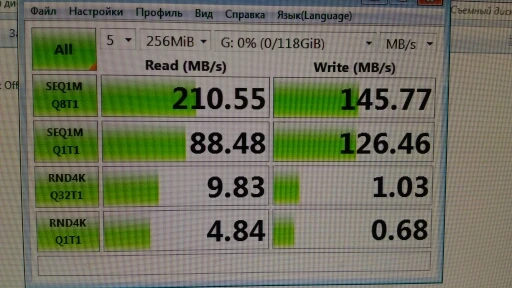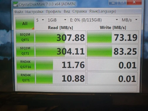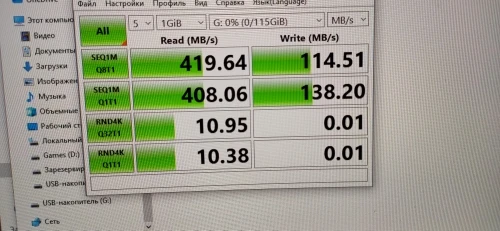 Средняя скорость записи на usb 3.1 71 MB/s, чтения 240 MB/s