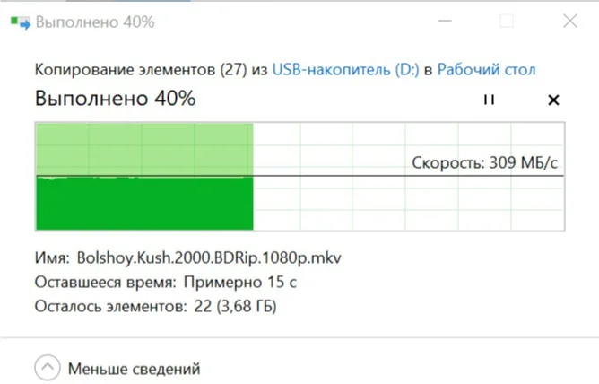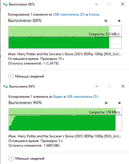 Гайс, прежде чем выкладывать отрицательный отзыв, прикрепляя к нему скриншоты с 20-30 МБ/сек, проверьте, в какой порт вы сунули накопитель. На USB 2.0 действительно такие скорости, а если вы воспользуетесь портом USB 3.0, то все будет в порядке. Посылка дошла до Москвы за 17 дней, брал 64 ГБ за 750 рублей. За эти деньги вещь очень неплохая. Скрин прилагается