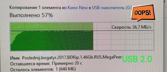 Ну у меня на юсб 2.0 больше 25Мб/с не показывает в реальных условиях так сказать. При этом наблюдаются и провалы переодически и подвисания. Но за эти деньги, конечно, у нас ничего похожего не купишь точно.) В целом доволен.