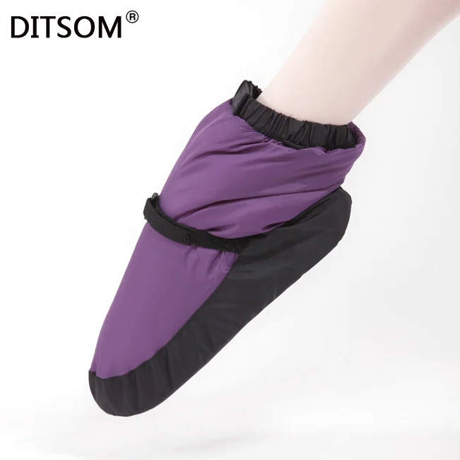 Женские теплые пуховые Балетные пуанты, зимние Пуховые пуховики фиолетового и черного цветов, обувь из эластичного материала для танцев, 2022