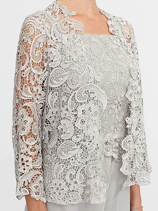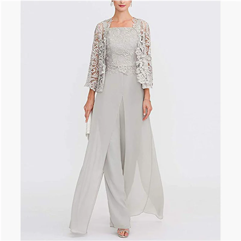 Женский кружевной костюм с блестками для матери невесты, брюки с ку...