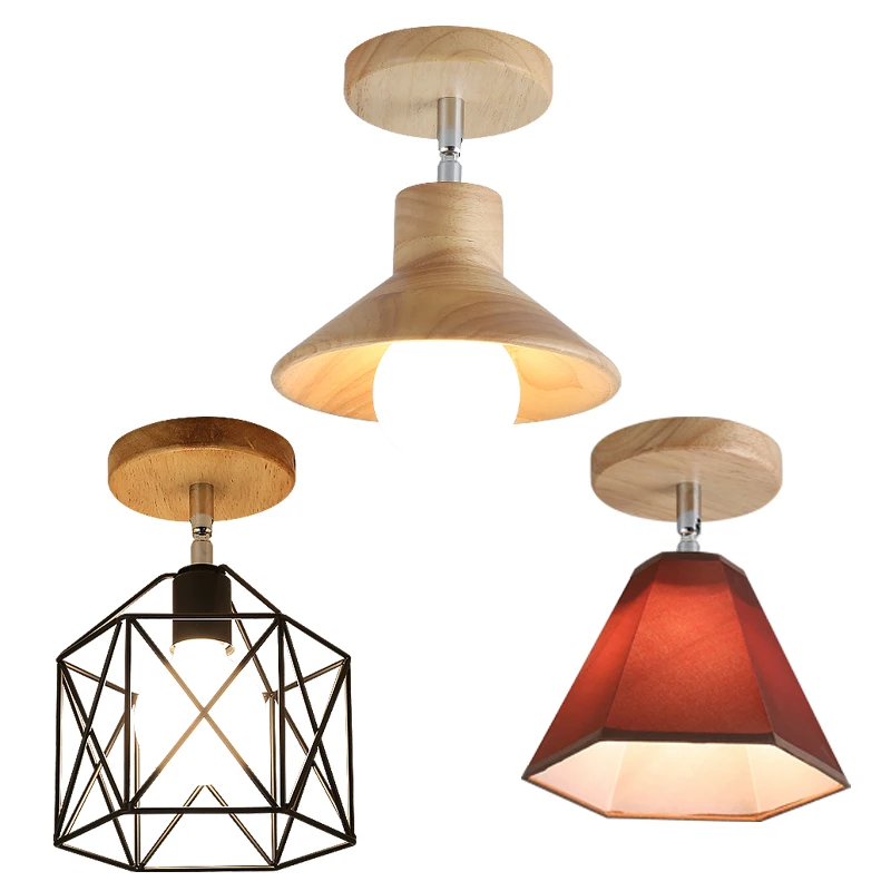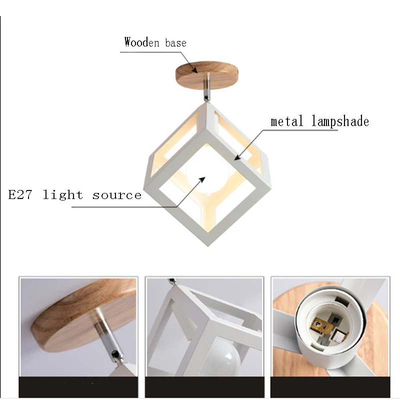 E27 Железный 5 Вт Железныйдеревянный потолочный светильник, абажур, подвесные светильники и абажуры, треугольник, металлическая зеркальная лампа