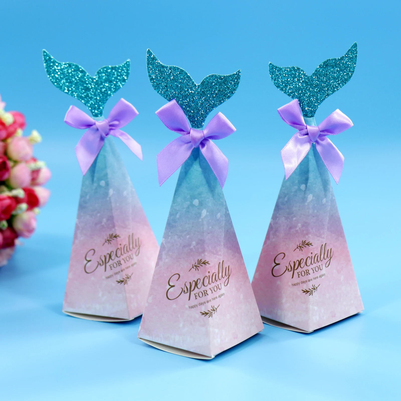 10 шт., коробка для конфет с хвостом Русалочки, из крафтовой бумаги