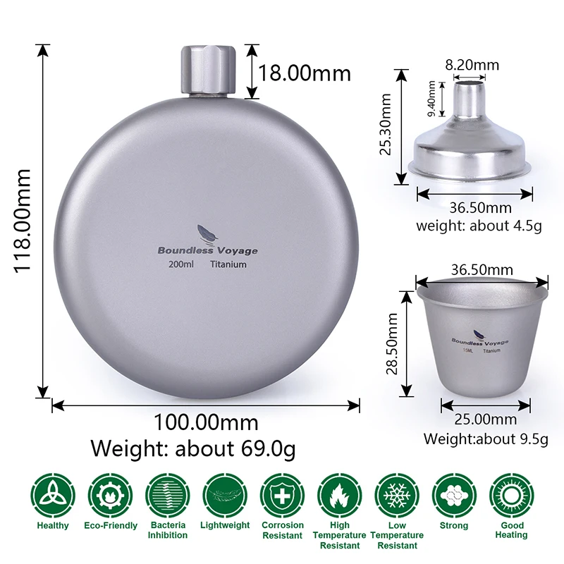 Материал:99.8% Титан (фляга), нержавеющая сталь (Воронка)