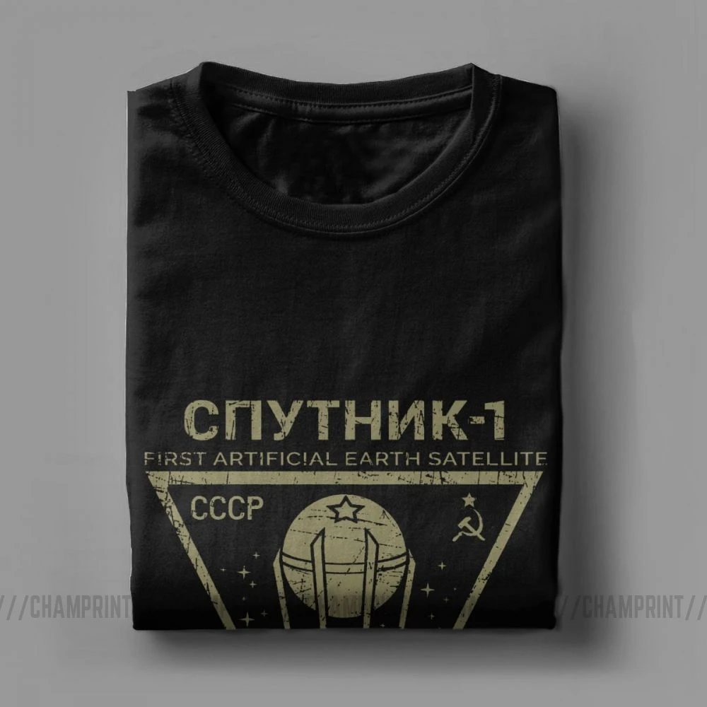 Мужские Винтажные хлопковые футболки Cnythnk, в стиле ретро, русские спутники, с круглым воротником, с коротким рукавом, идея для подарка, одежда