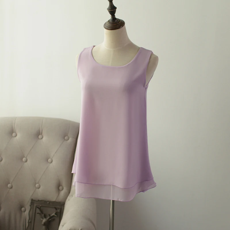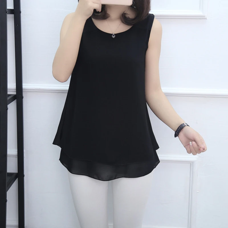 Женская шифоновая блузка без рукавов, с круглым вырезом