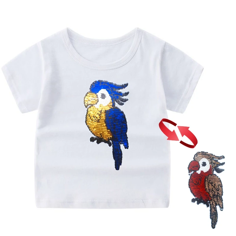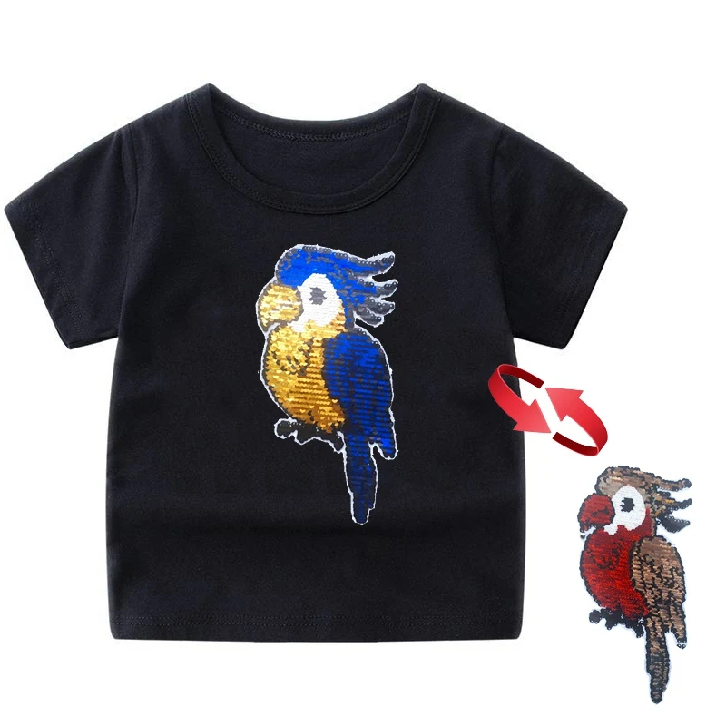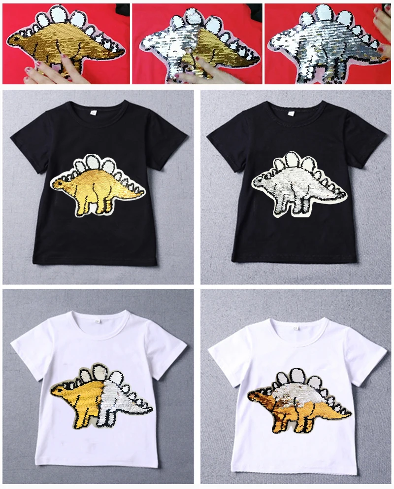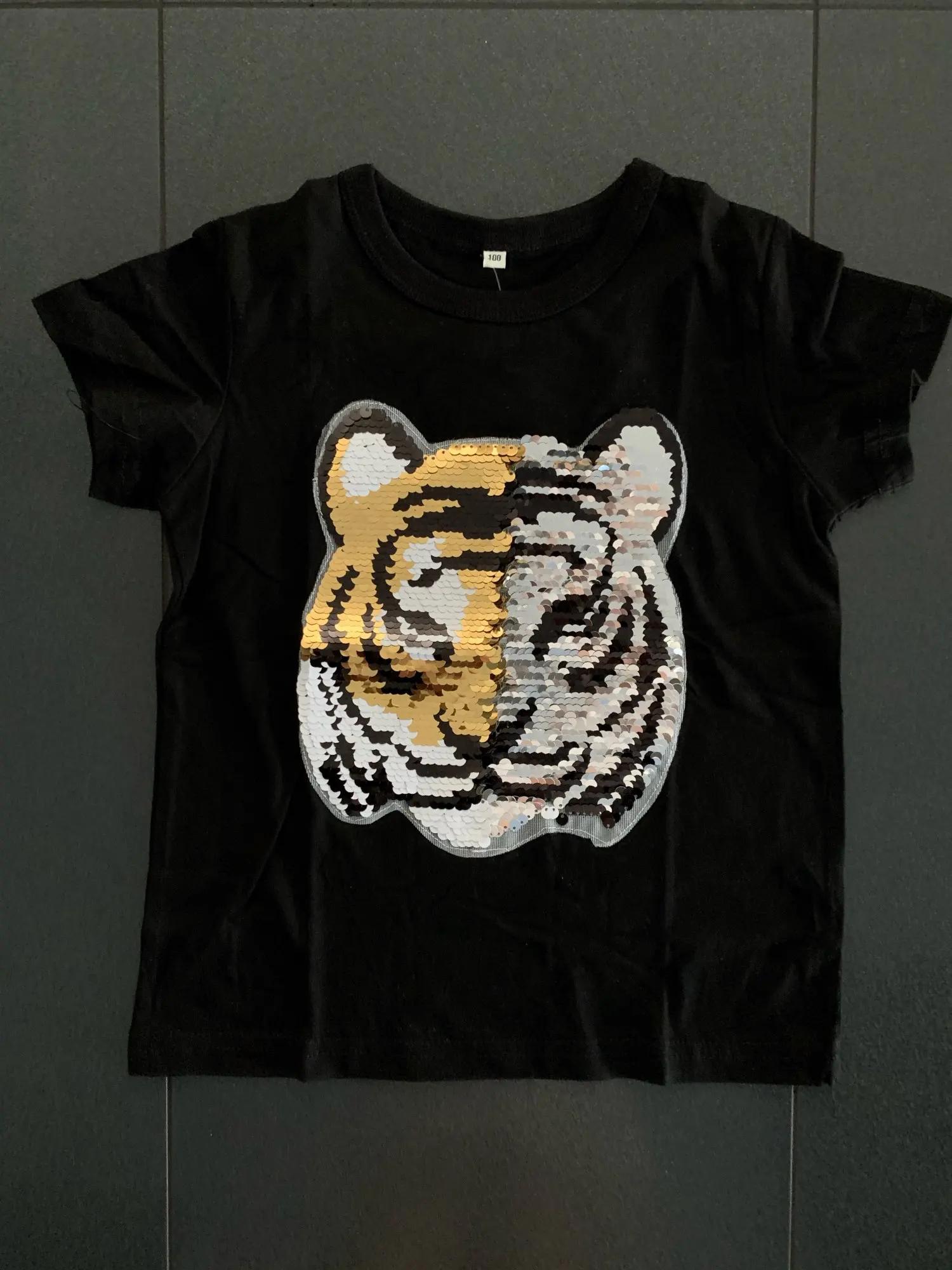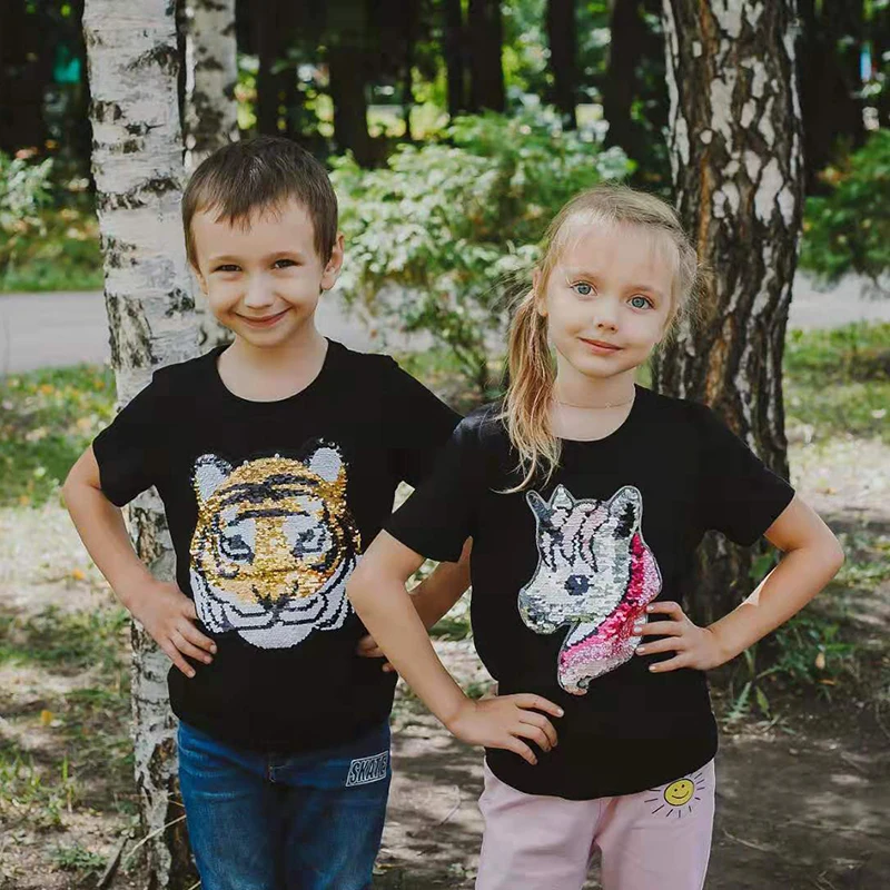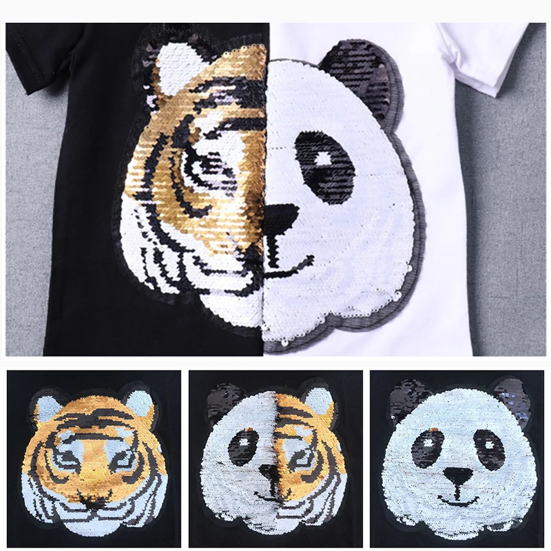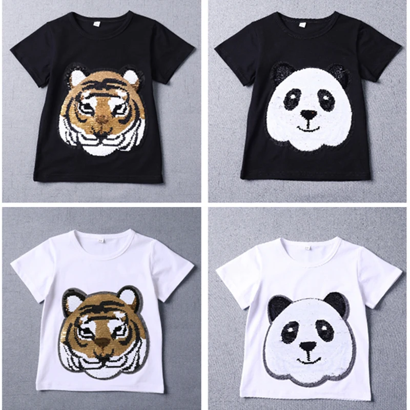 Детская футболка с пандой, тигром, динозавром, блестками, для мальчиков, Детская футболка, летние топы с мультяшным принтом, футболки для малышей