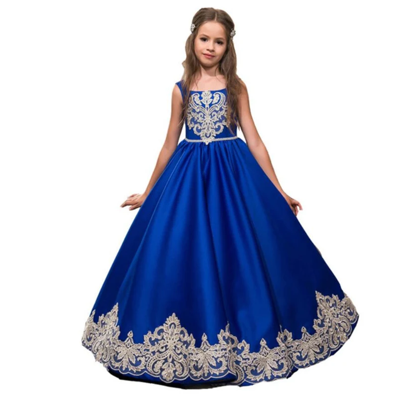 Белое элегантное атласное платье с цветочным рисунком для девочек, кружевное платье стразы с цветочным рисунком для свадеб, платья без рукавов для первого Святой причастия