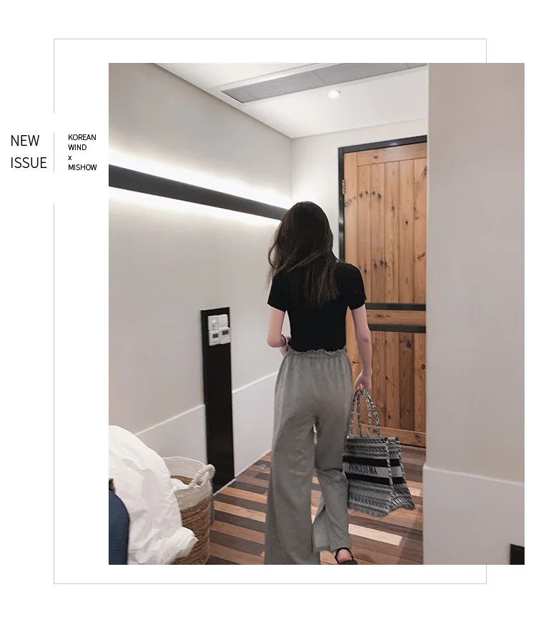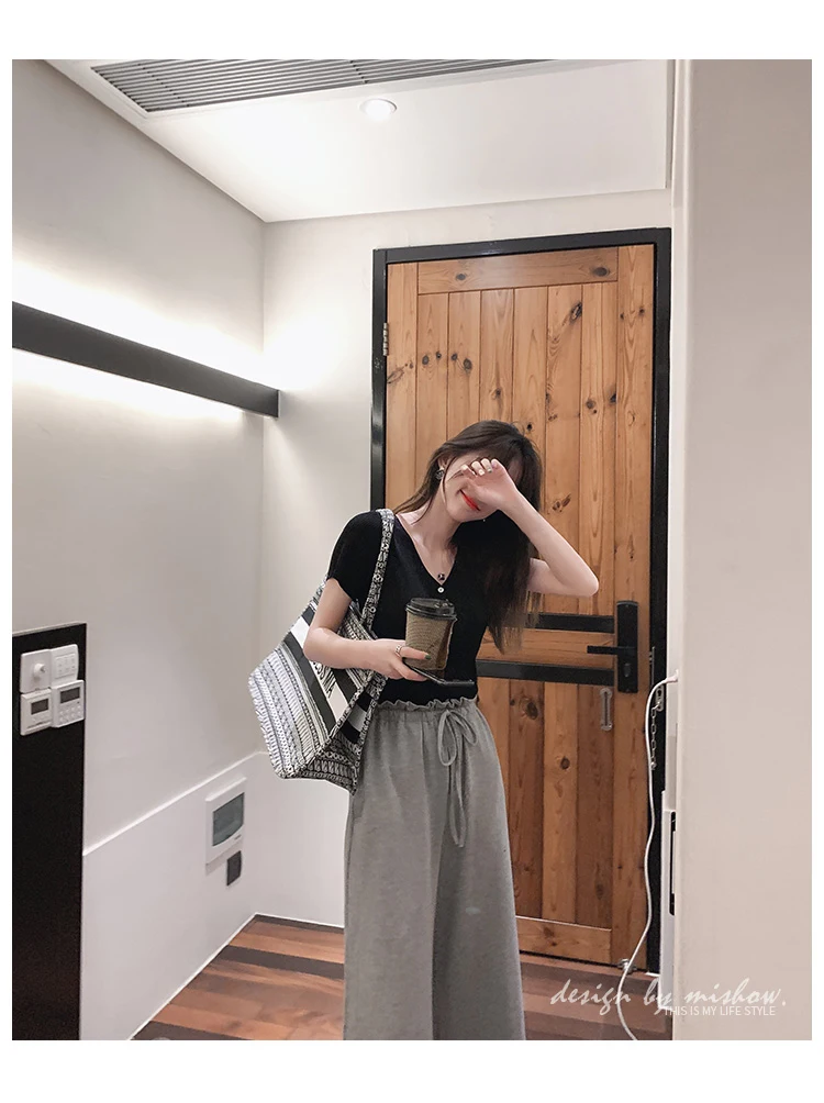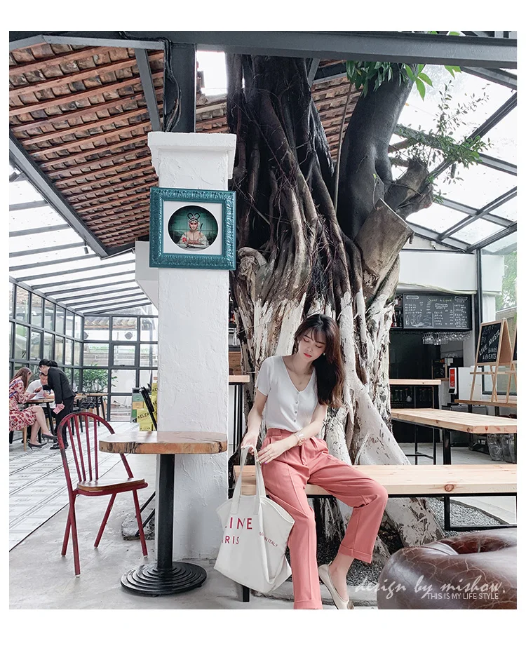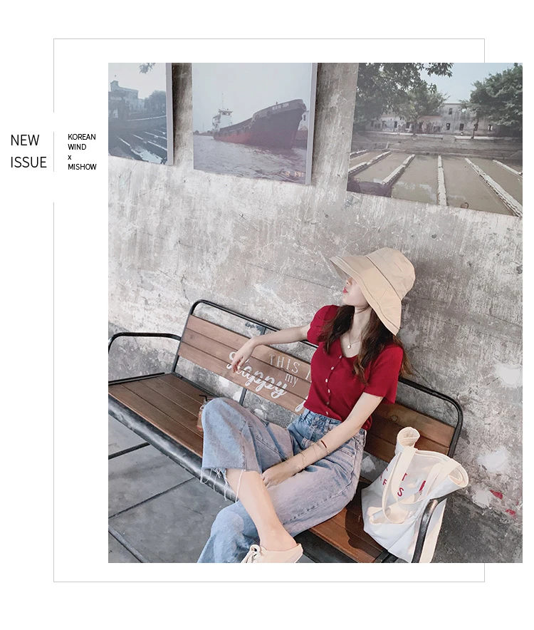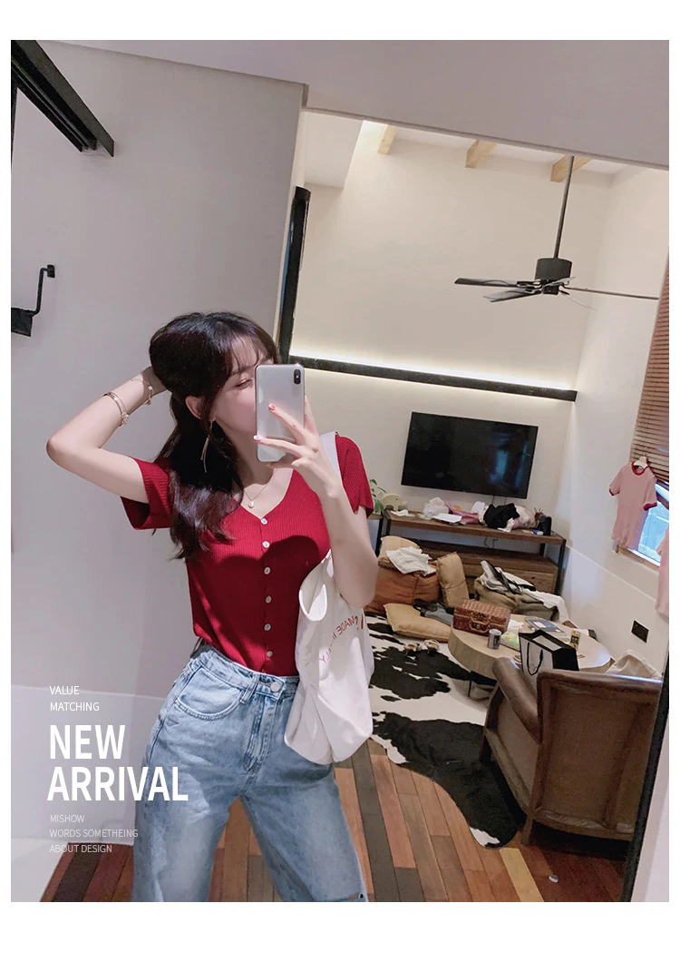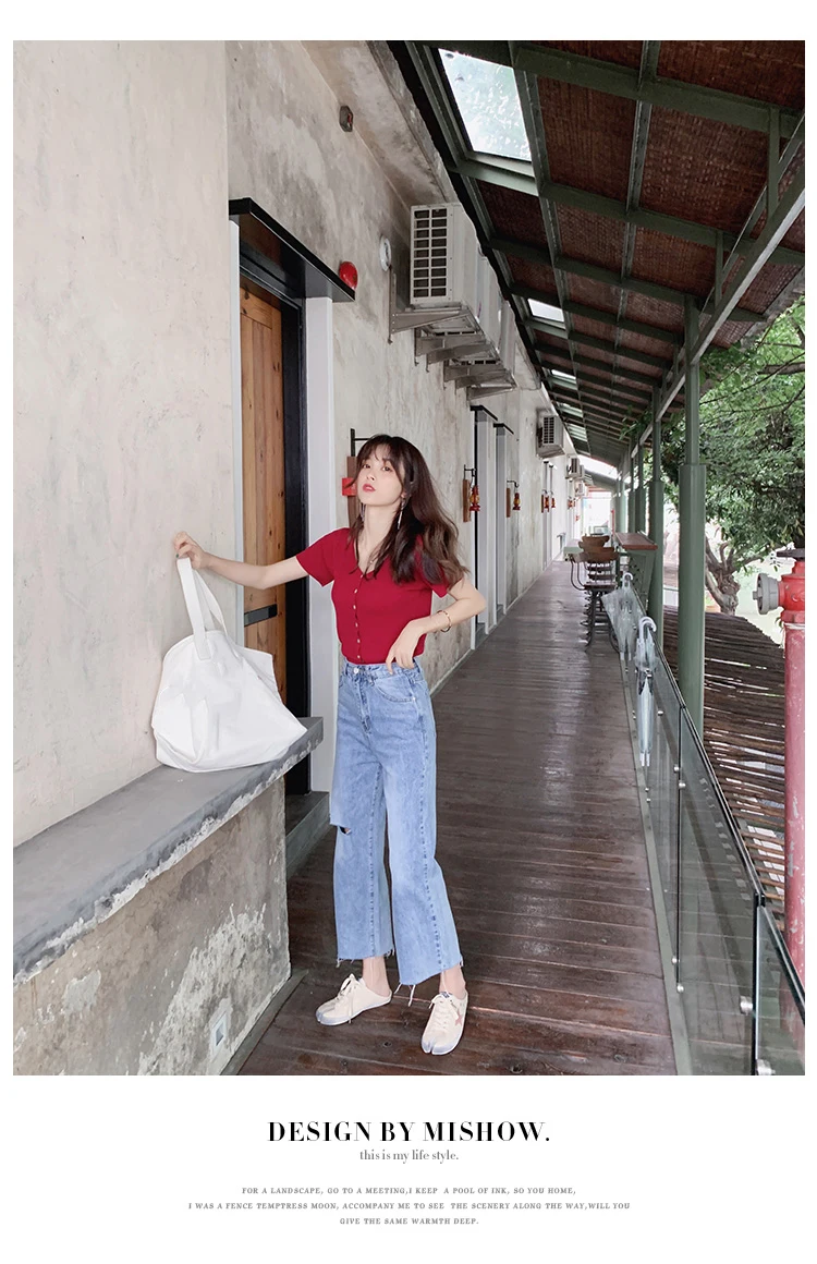 Mishow Новая модная летняя трикотажная футболка в корейском стиле с V-образным вырезом и короткими рукавами Новая коллекция 2019 Повседневный стиль Материал полиамид MX19B5228