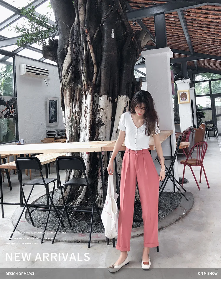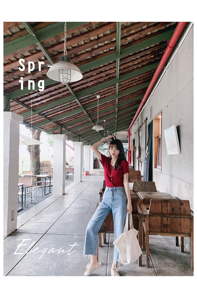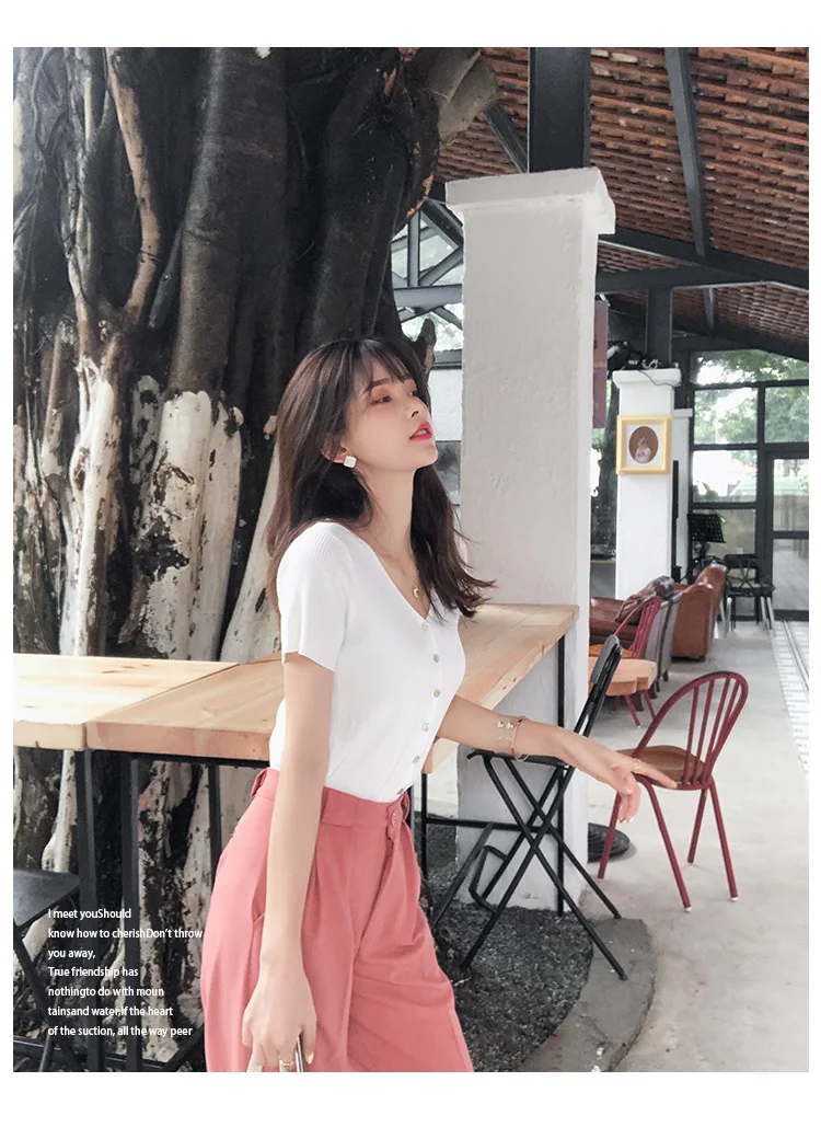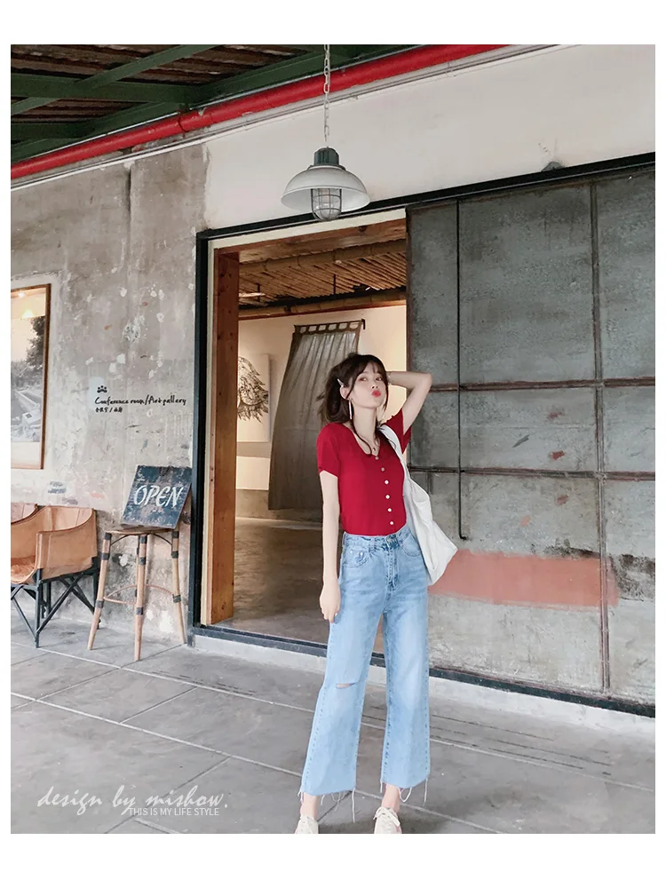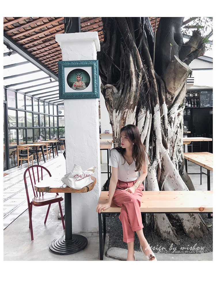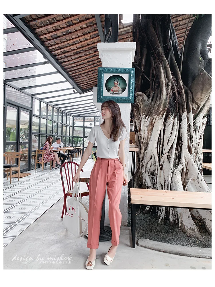 Mishow Новая модная летняя трикотажная футболка в корейском стиле с V-образным вырезом и короткими рукавами Новая коллекция 2019 Повседневный стиль Материал полиамид MX19B5228