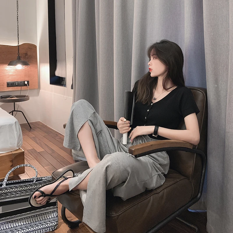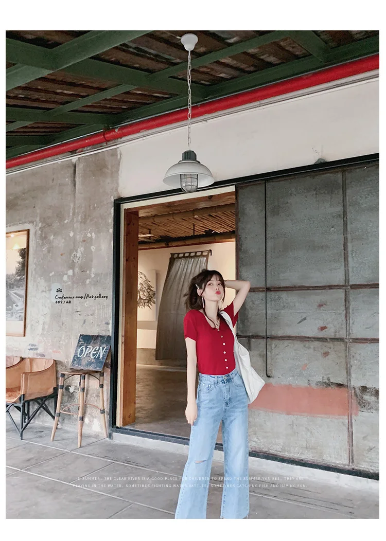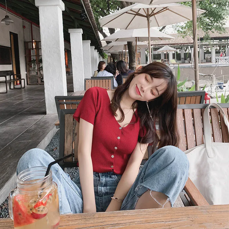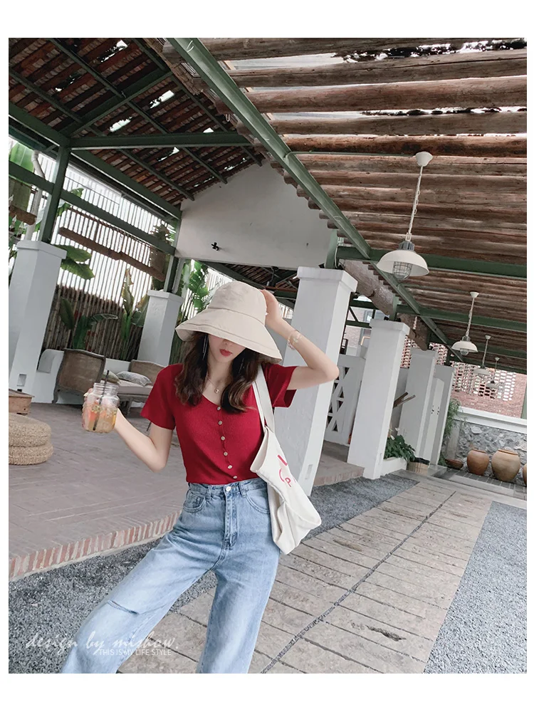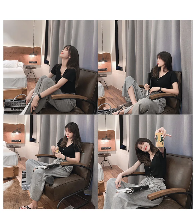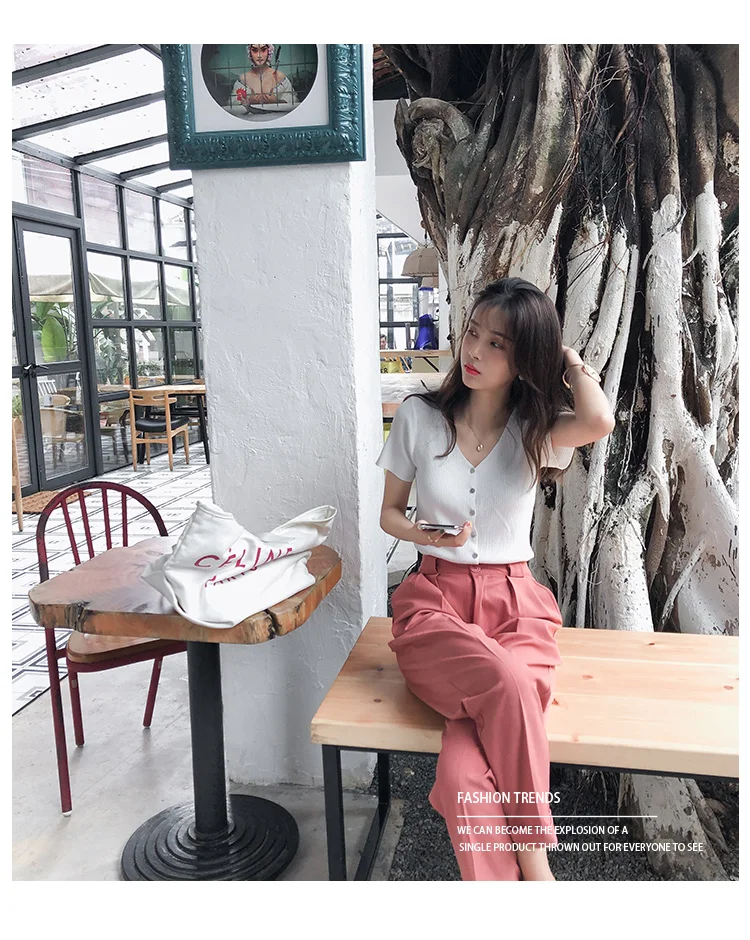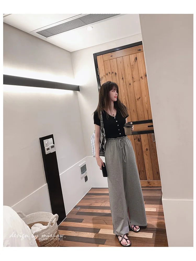 Mishow Новая модная летняя трикотажная футболка в корейском стиле с V-образным вырезом и короткими рукавами Новая коллекция 2019 Повседневный стиль Материал полиамид MX19B5228