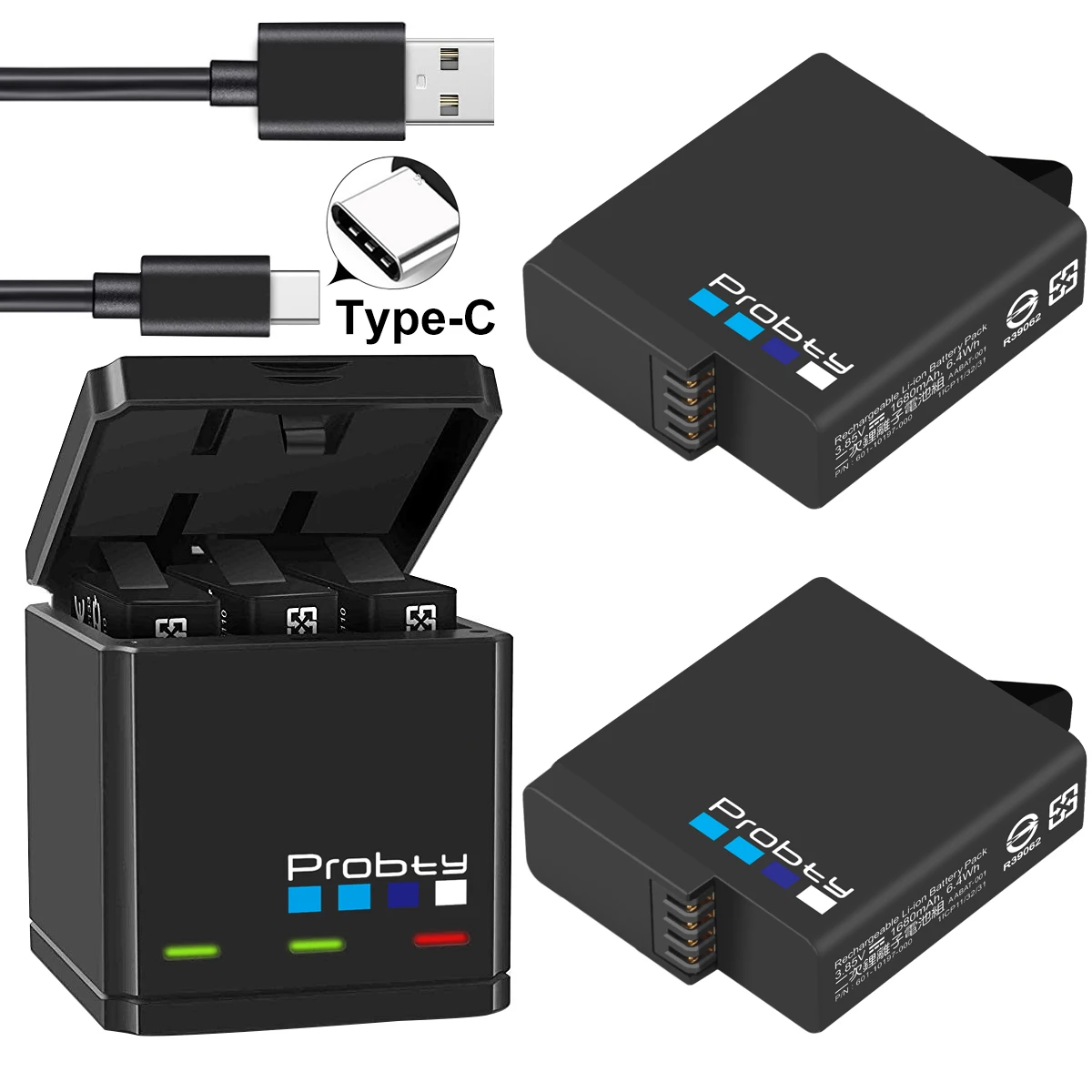 Оригинальные аккумуляторы probty для GoPro Hero 7 hero 6 hero 5, черные аккумуляторы и тройное зарядное устройство для GoPro hero 765, черные аксессуары для аккумуляторов