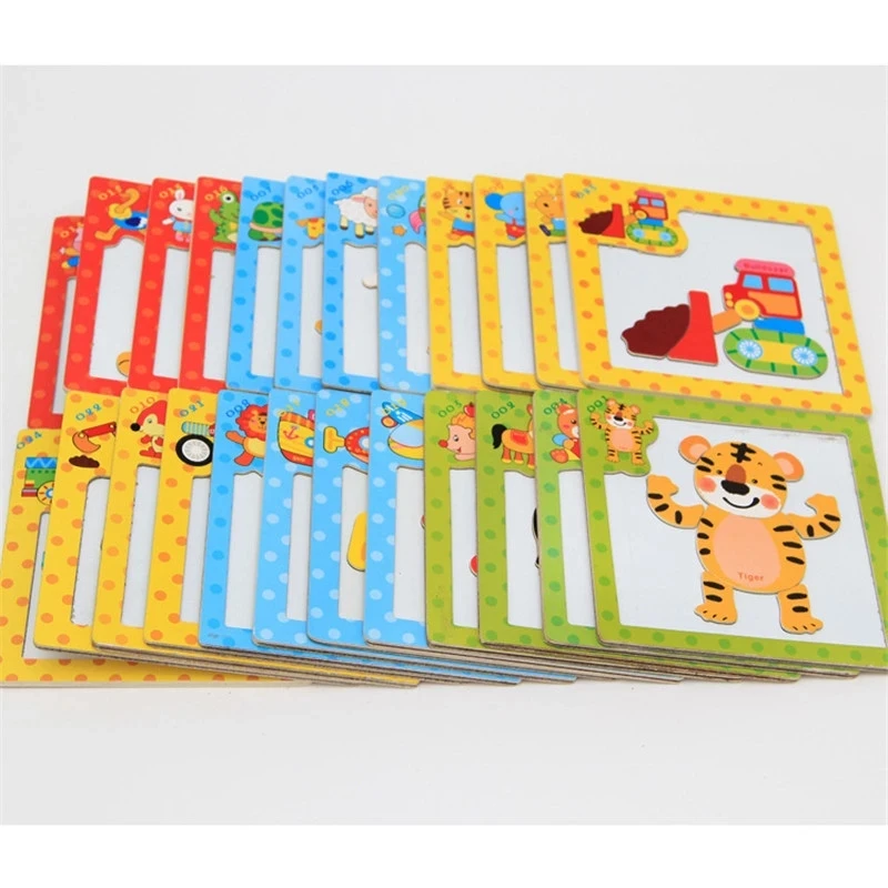 Головоломка детская магнитная, деревянная, с мультяшными животными