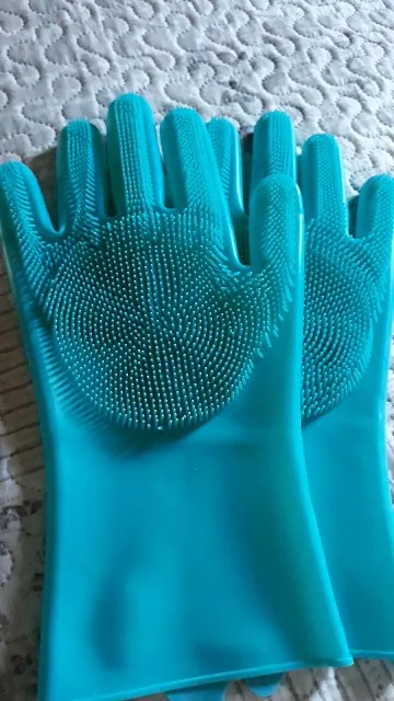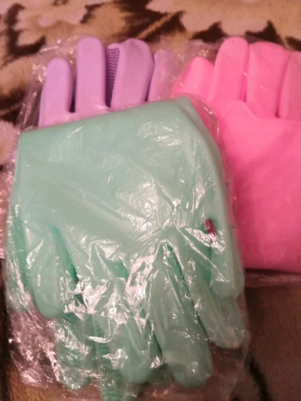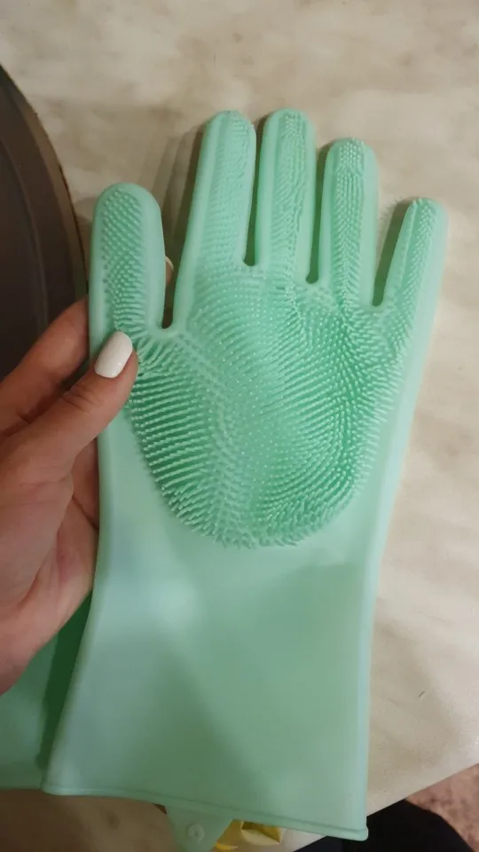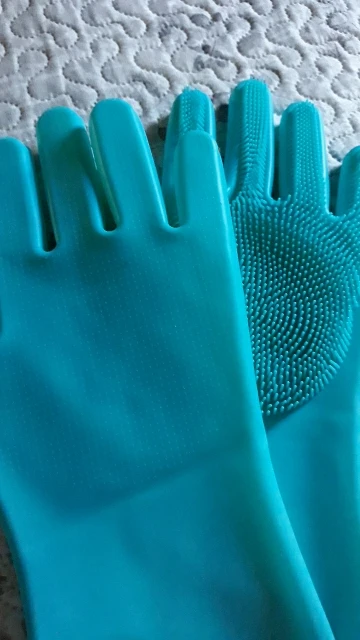 Перчатки понравились,но хотелось бы чтобы были на 2 размера меньше.Эти перчатки на мужскую руку.Цвет бирюзовый,насыщенный,как я люблю.Уже пользовалась ими,мыла ванну. Всё отлично.