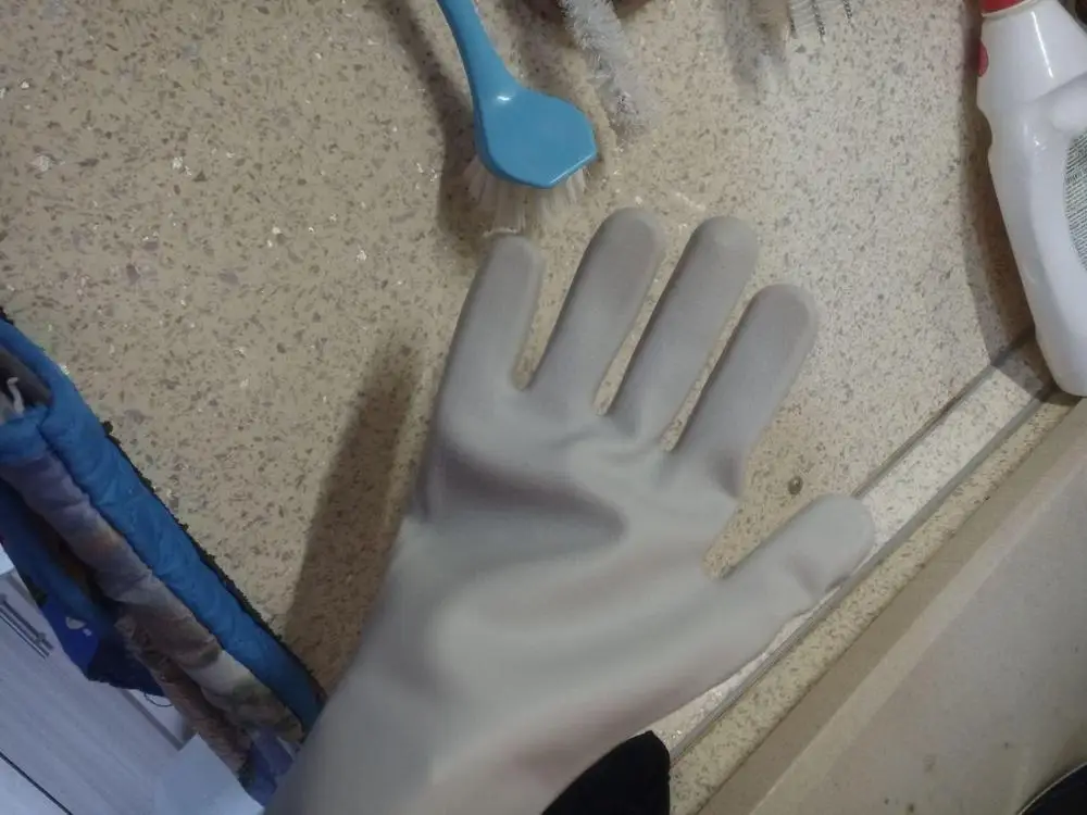 Перчатки хорошие, но опасно мыть стеклянную посуду, всё скользит. Для большого объёма вещь нужная. Посылка шла долго.