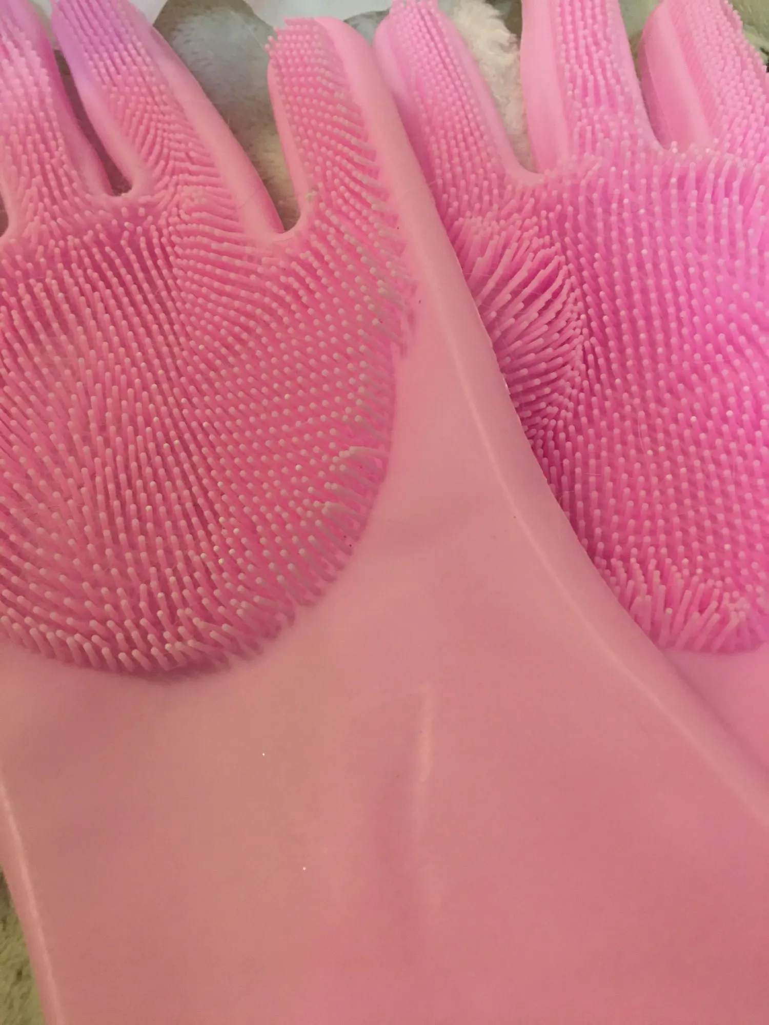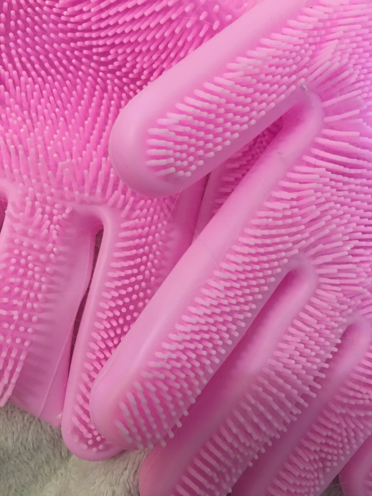 Прикольные перчатки) взяла чтобы мыть в них щенка (линяет сильно), но пока в деле не пробовала. Описанию соответствуют.